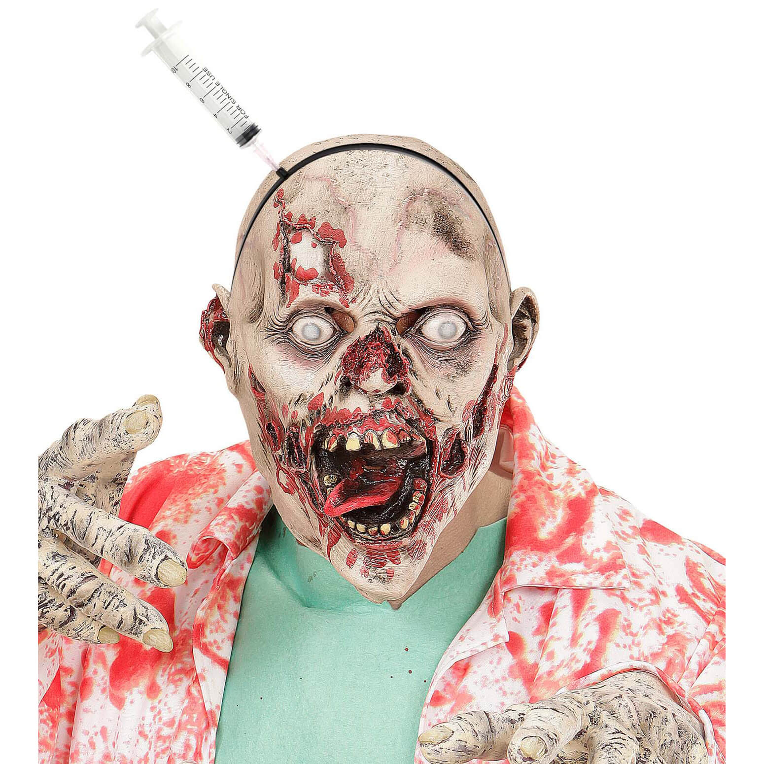 Blutige Spritze durch Kopf Wunde Haarreif silber-schwarz