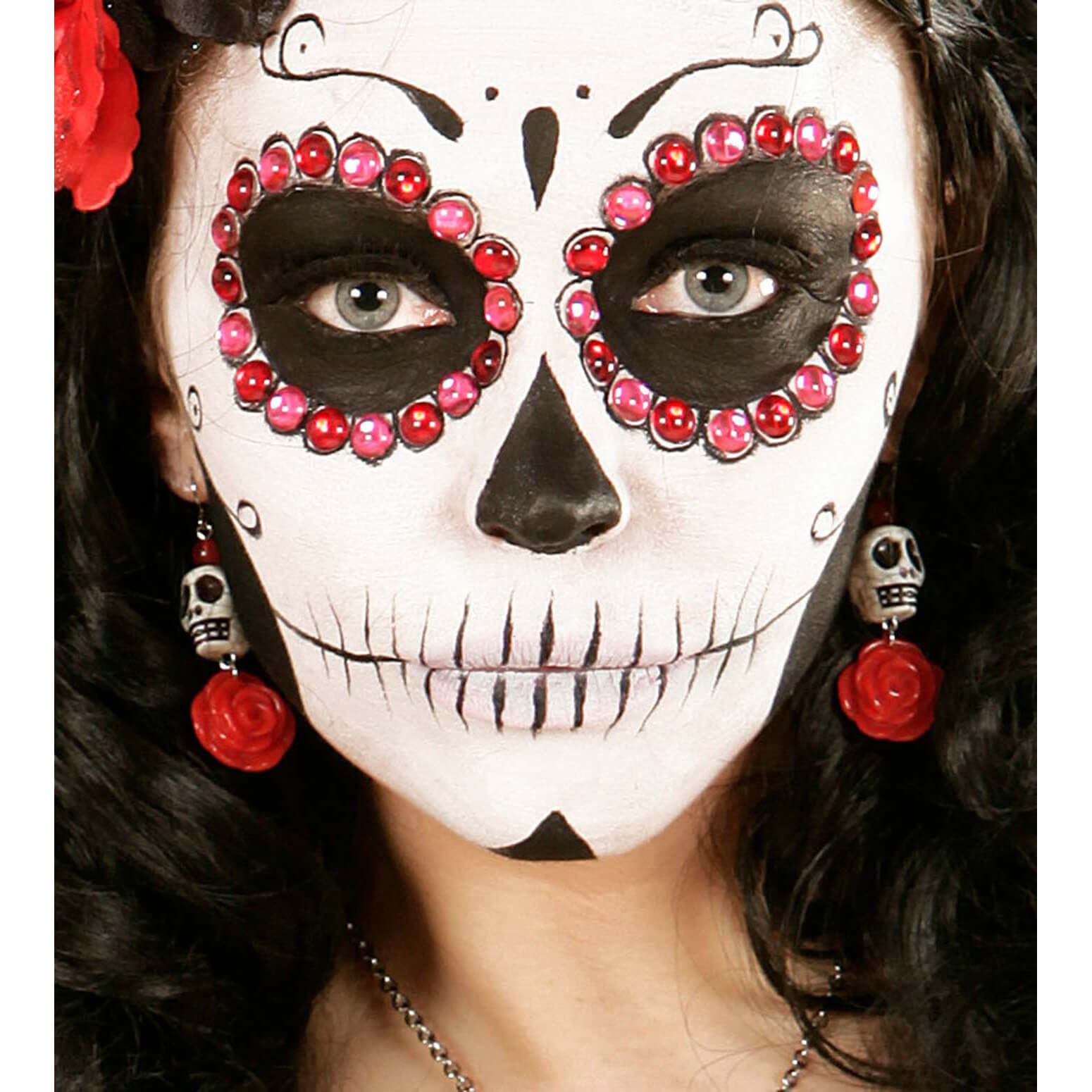 Schädel bunt D.d.l.M. Ohrringe Schädel mit roten Perlen und Rosen beige-rot – (ARTIKEL/REFERNZ: 8003558035069/WI03506 – Kategorie/Suche: Dia de los Muertos Catrina Tag der Toten – Hersteller: Widmann S.r.l.)