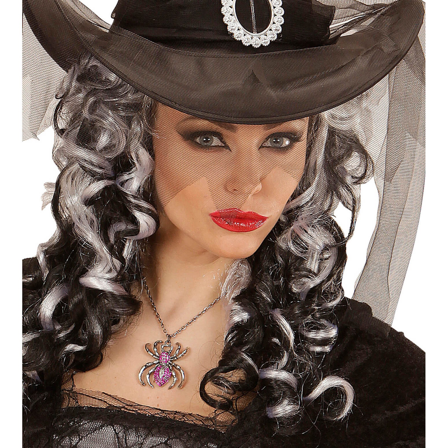 Spinne Halskette mit Anhänger mit Strasssteinen elegant silber-pink – (ARTIKEL/REFERNZ: 8003558035144/WI03514 – Kategorie/Suche: – Hersteller: Widmann S.r.l.)