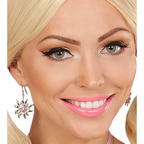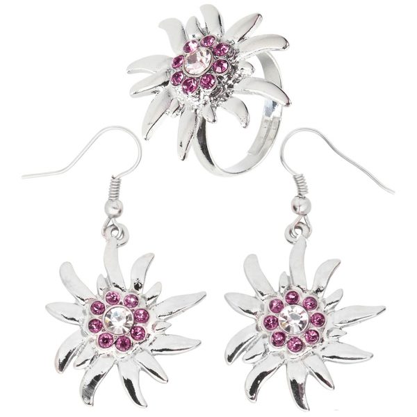 Trachten Ohrringe+Ring mit Edelweiß silber-rosa – (ARTIKEL/REFERNZ: 8003558035175/WI03517 – Kategorie/Suche: Oktoberfest – Hersteller: Widmann S.r.l.)