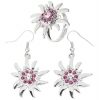 Trachten Ohrringe+Ring mit Edelweiß silber-rosa
