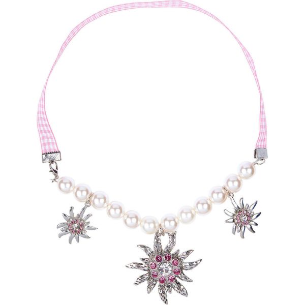 Trachten Halskette Collier Karoband mit Perlen und Edelweiß silber-rosa – (ARTIKEL/REFERNZ: 8003558035199/WI03519 – Kategorie/Suche: Oktoberfest – Hersteller: Widmann S.r.l.)