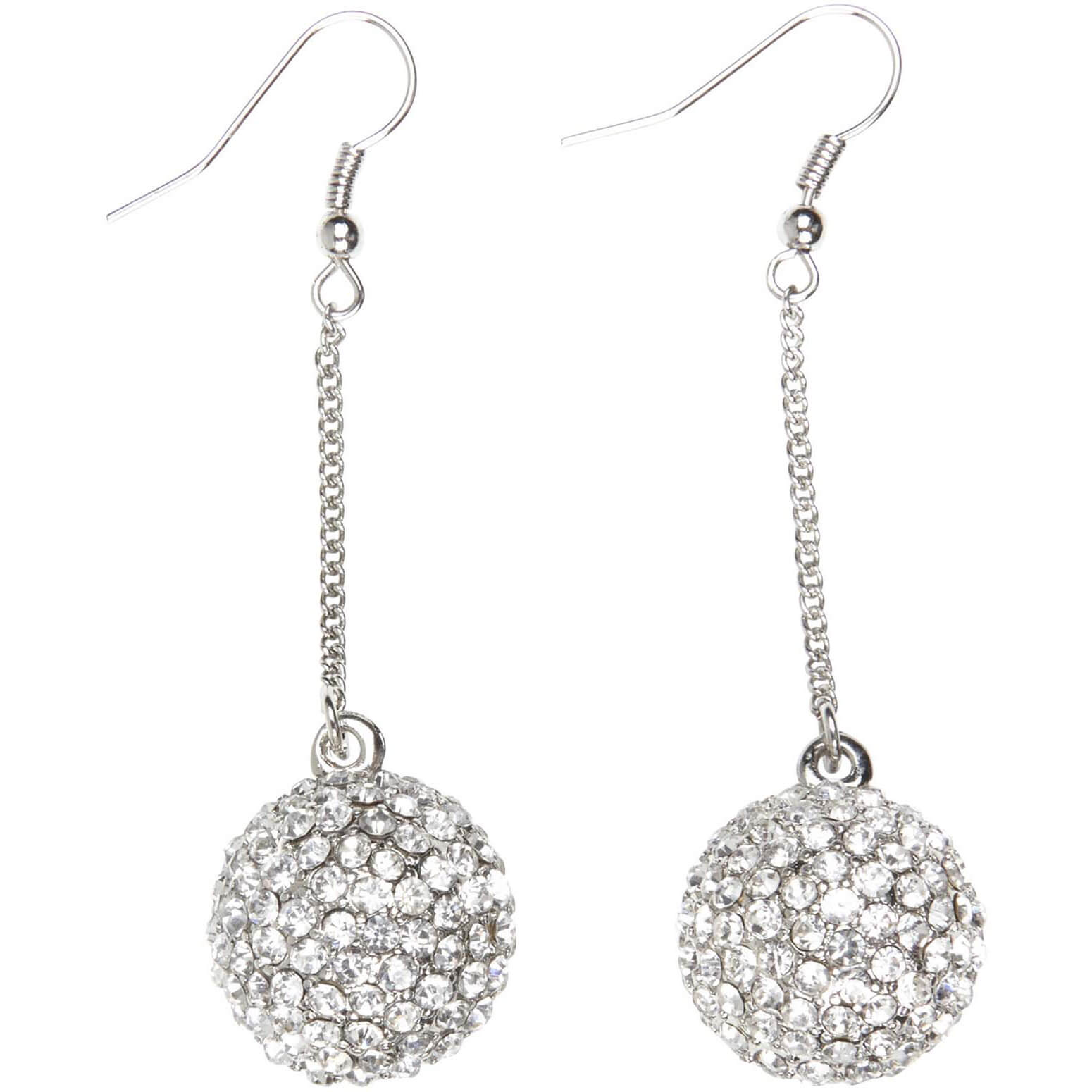 80er Jahre Discokugel Ohrringe Strassoptik Ohrhänger für Ohrlöcher silber