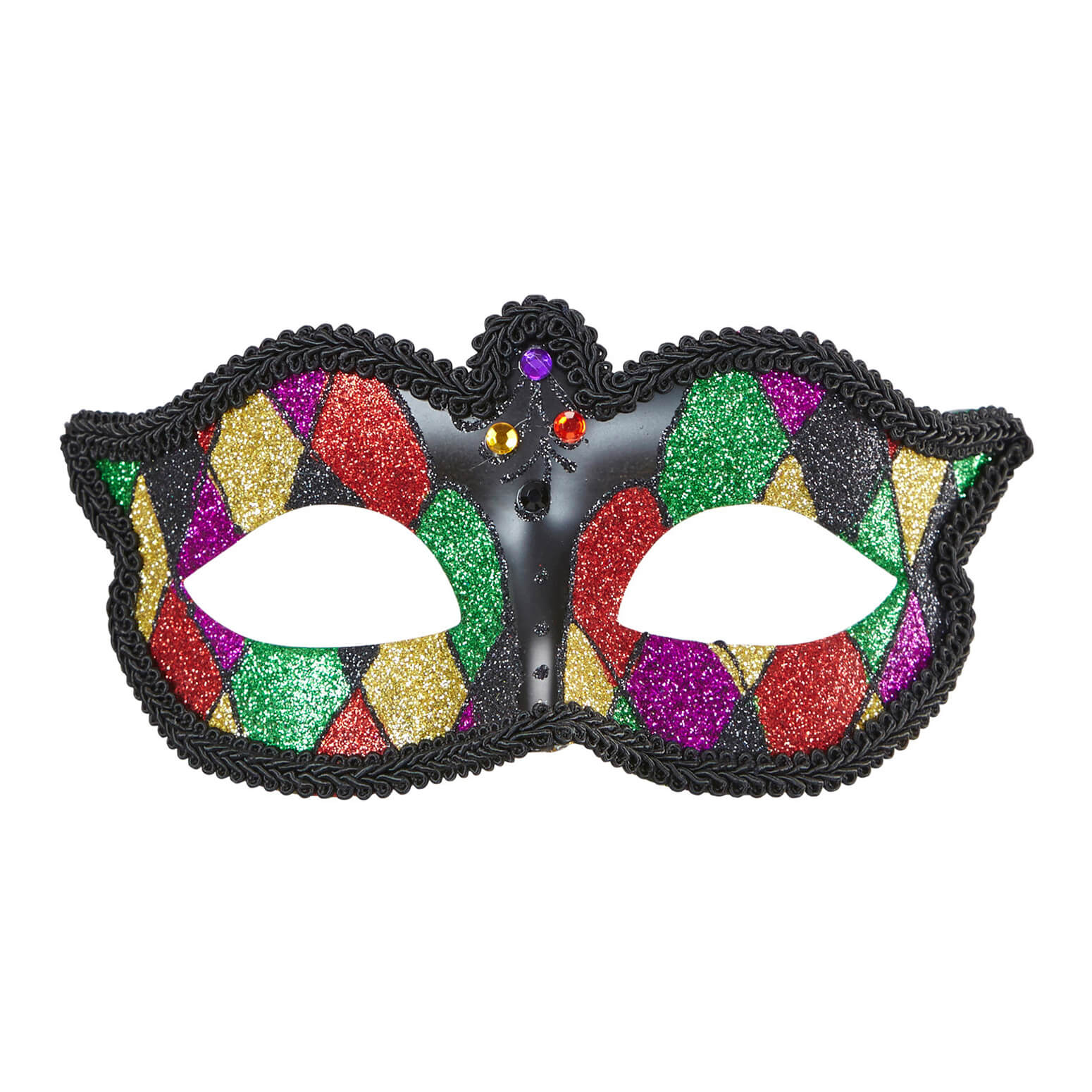 Clown Harlekin Dominomaske mit Glitzer und Rauten bunt