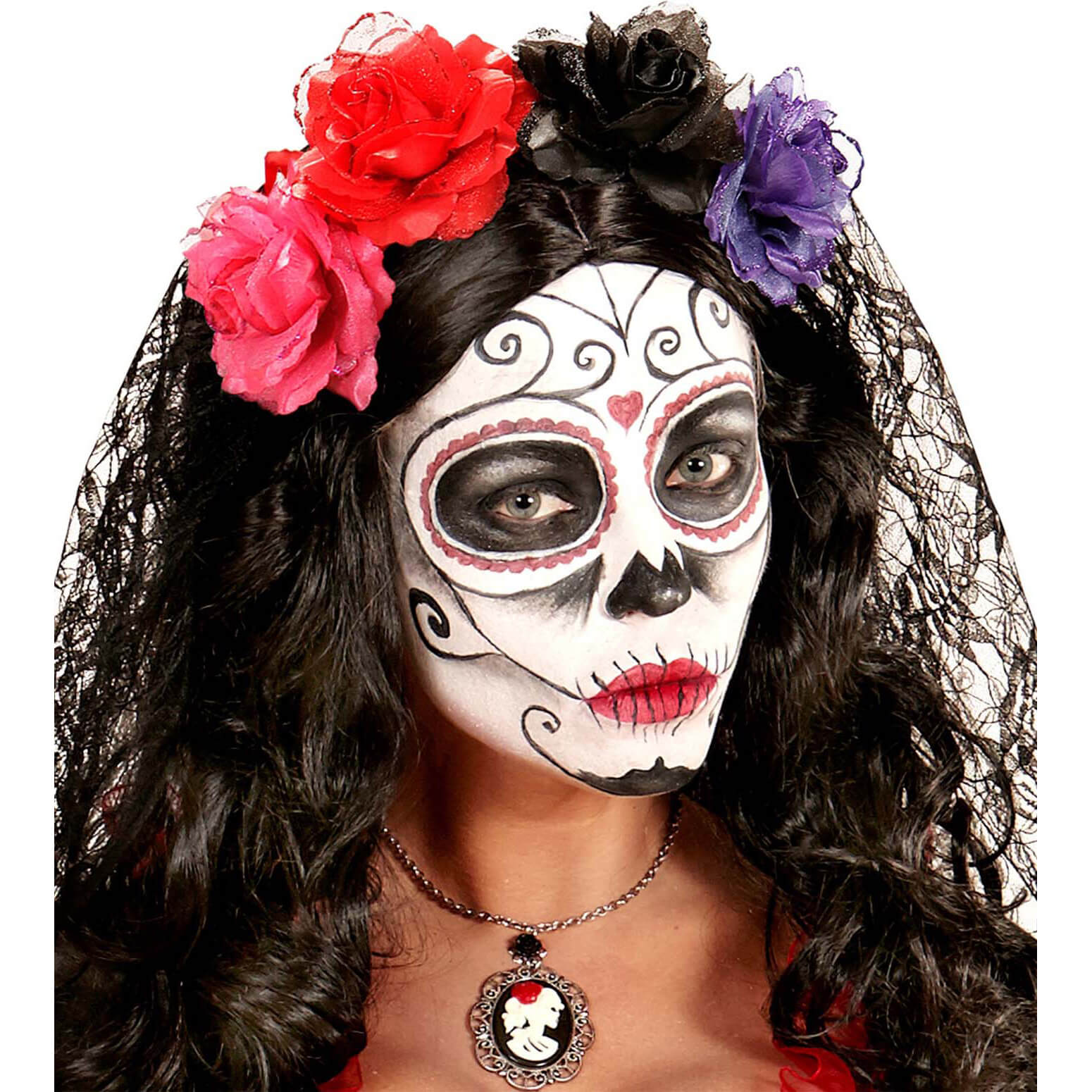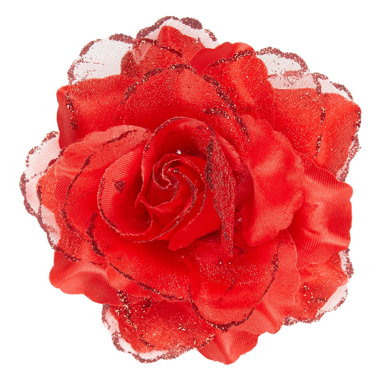 Hawaii/Blumen Haarclip mit Blume Textilblume in Rosenform mit Glitzer rot – (ARTIKEL/REFERNZ: 8003558041213/WI04121 – Kategorie/Suche: Haarklammer Haarspange – Hersteller: Widmann S.r.l.)