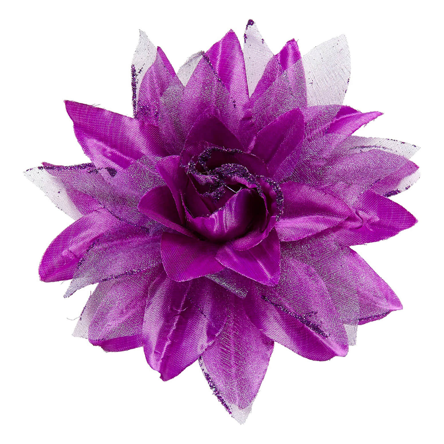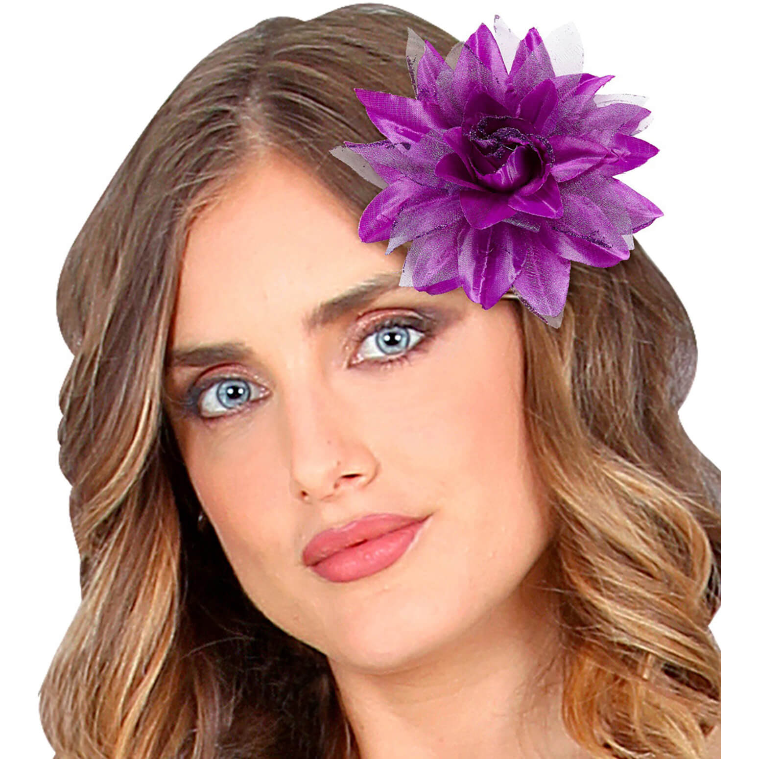 Hawaii/Blumen Haarclip mit Blume tropische Textilblume mit Glitzer lila – (ARTIKEL/REFERNZ: 8003558041282/WI04128 – Kategorie/Suche: Haarklammer Haarspange – Hersteller: Widmann S.r.l.)