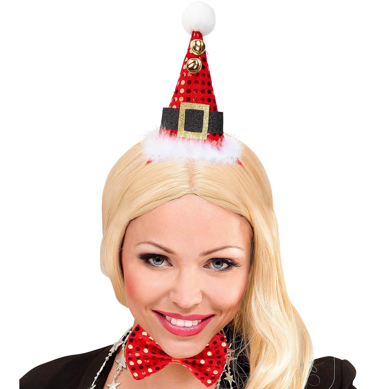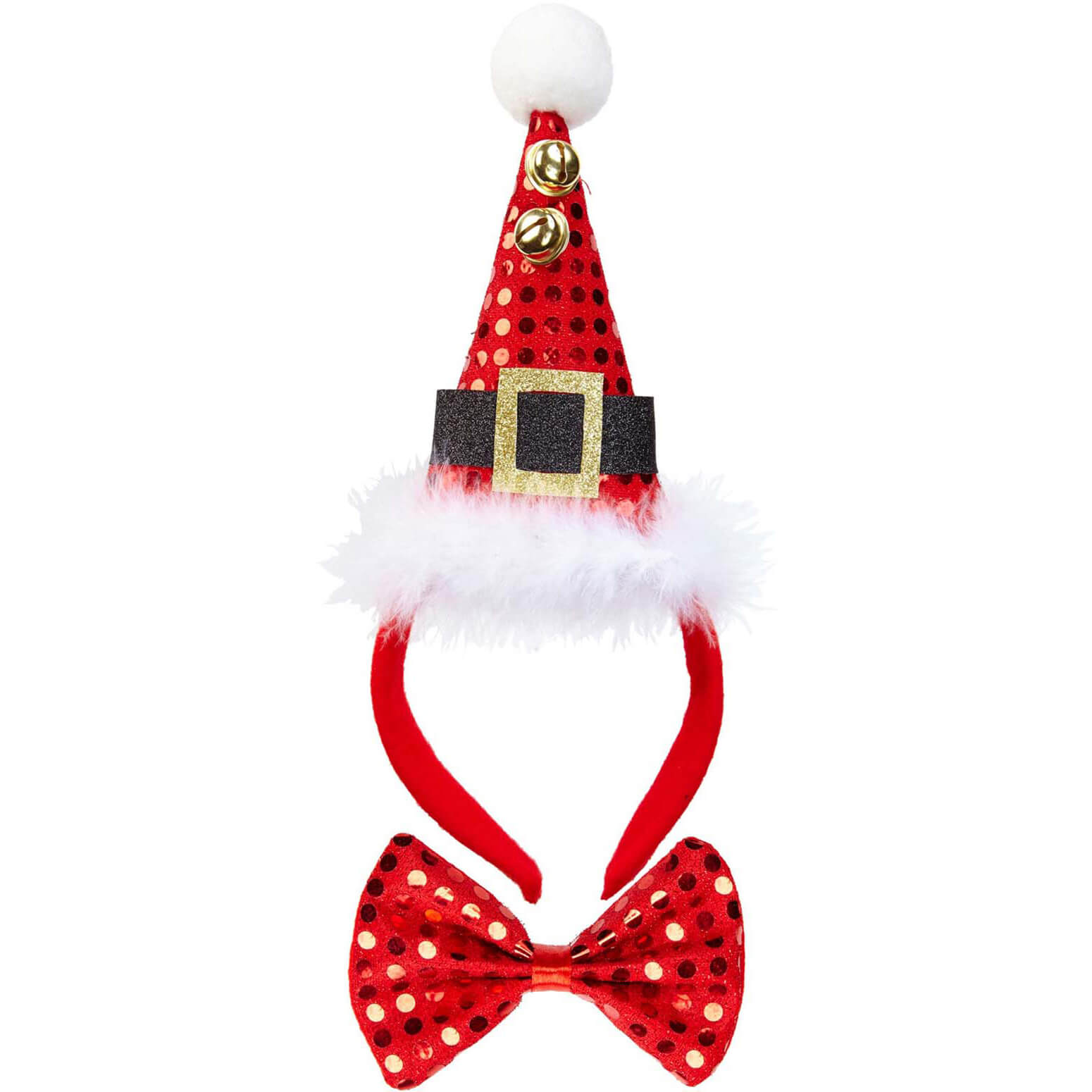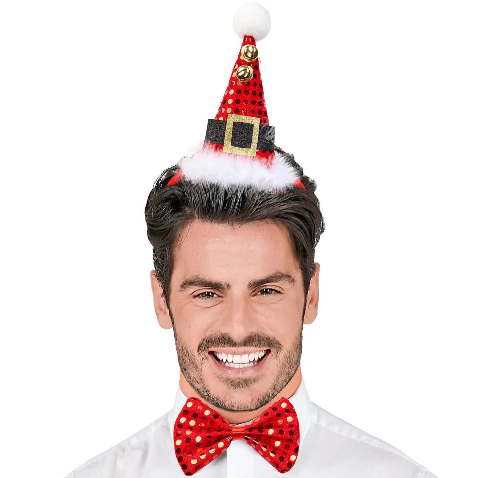 Weihnachtsmann Nikolaus Deko Minihut auf Haarreif+Fliege als Set mit weißem Marabu und Pailletten rot – (ARTIKEL/REFERNZ: 8003558041589/WI04158 – Kategorie/Suche: – Hersteller: Widmann S.r.l.)