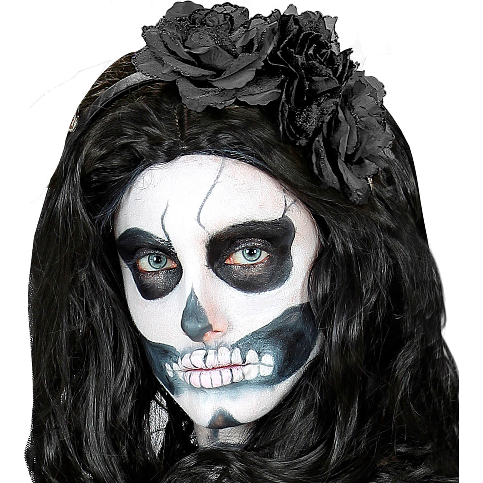 Geister Braut Haarreif mit Blumen Rosen und Glitzer schwarz