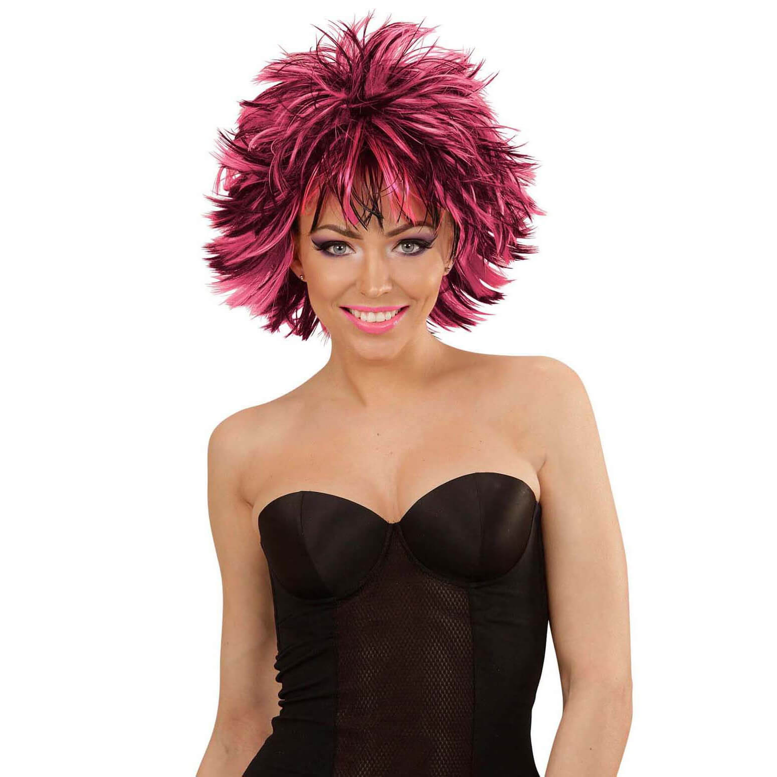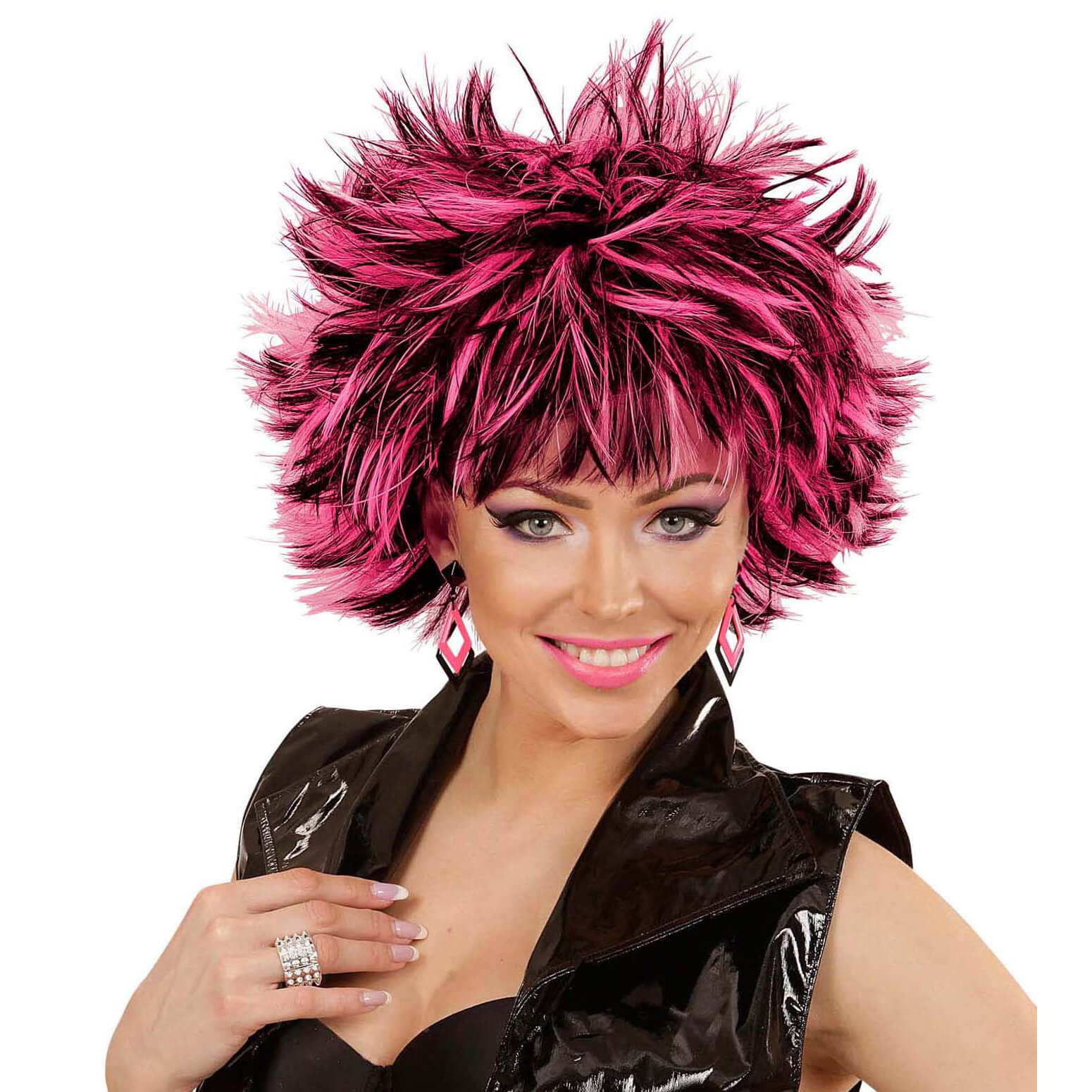 Perücke kurz glatt Steamy Kurzhaarfrisur strubbelig mit Pony und Strähnen zweifarbig schwarz-pink – (ARTIKEL/REFERNZ: 8003558044139/WI04413 – Kategorie/Suche: – Hersteller: Widmann S.r.l.)