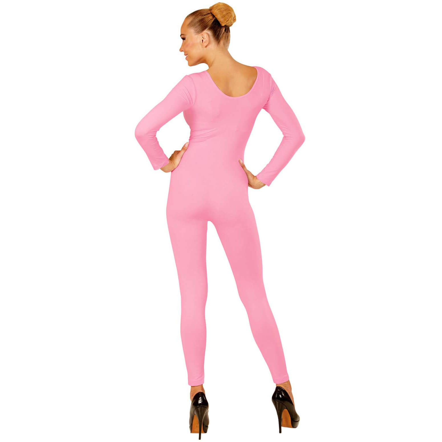 Ganzkörperbody Catsuit mit Ärmeln blickdicht einfarbig rosa