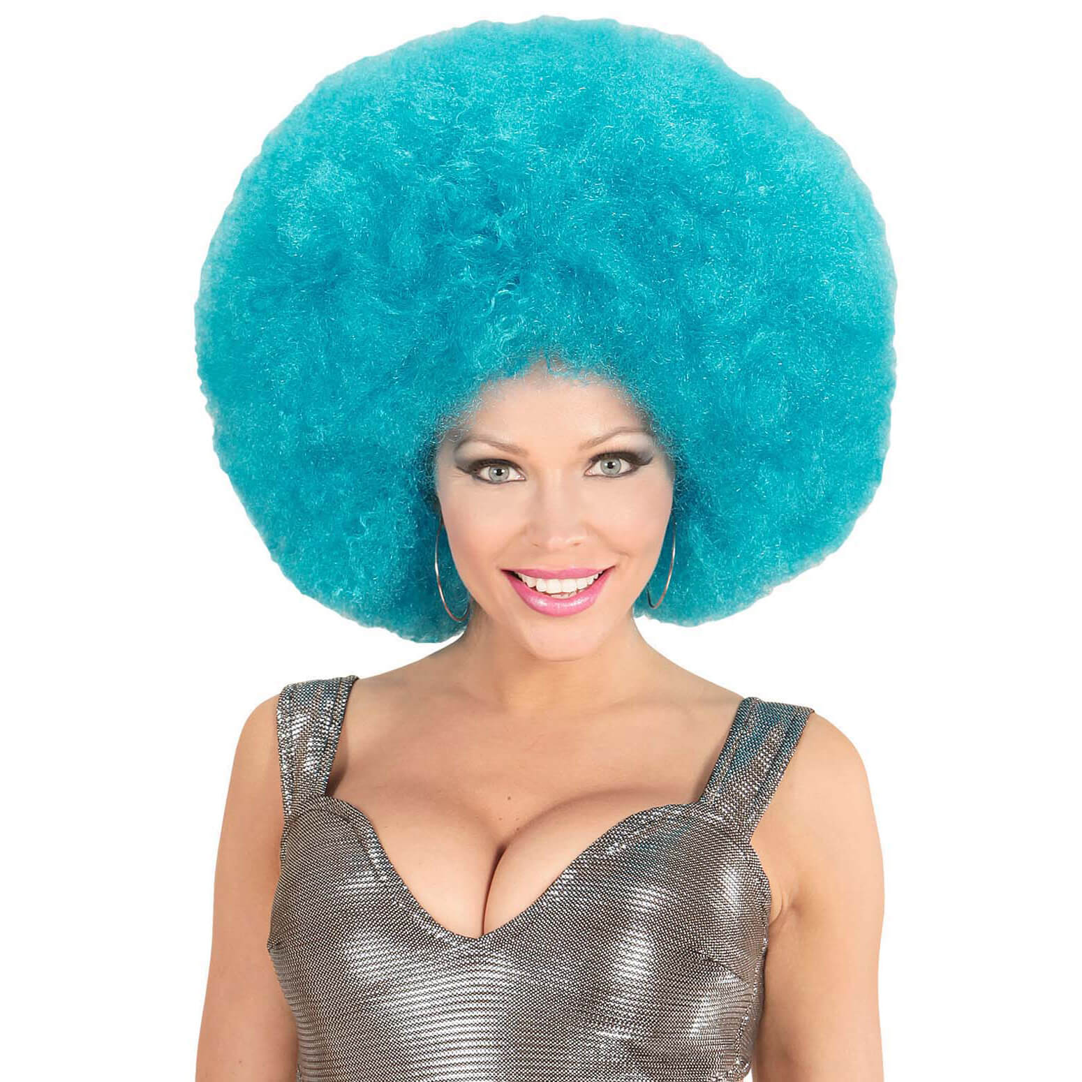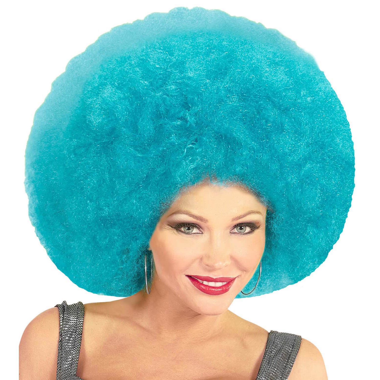 Afrika / 70er Jahre Afroperücke kurz glatt Riesen Afro Kurzhaarfrisur Oversize Afro türkis
