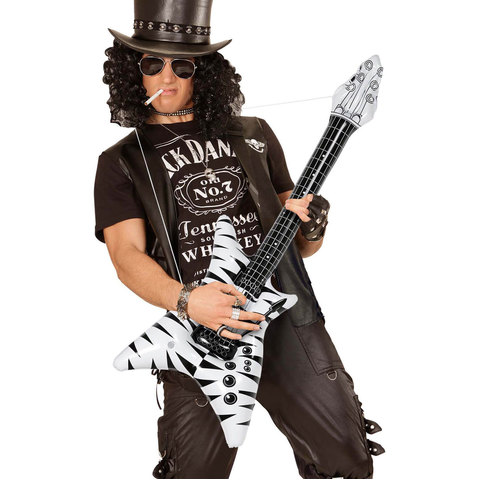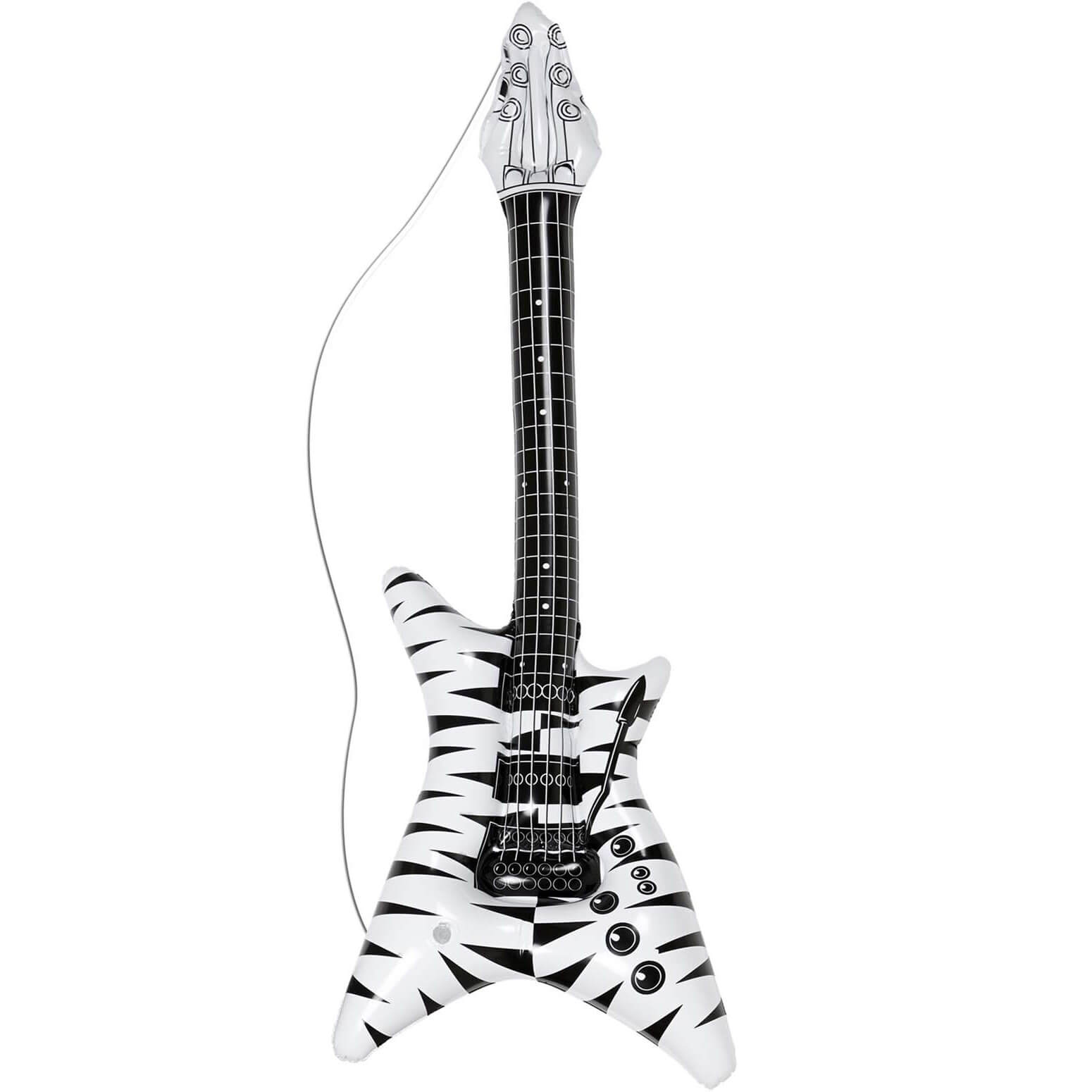 Instrument E-Gitarre Instrument Deko aufblasbar spitze Form Zebramuster zum Umhängen 92cm weiß-schwarz