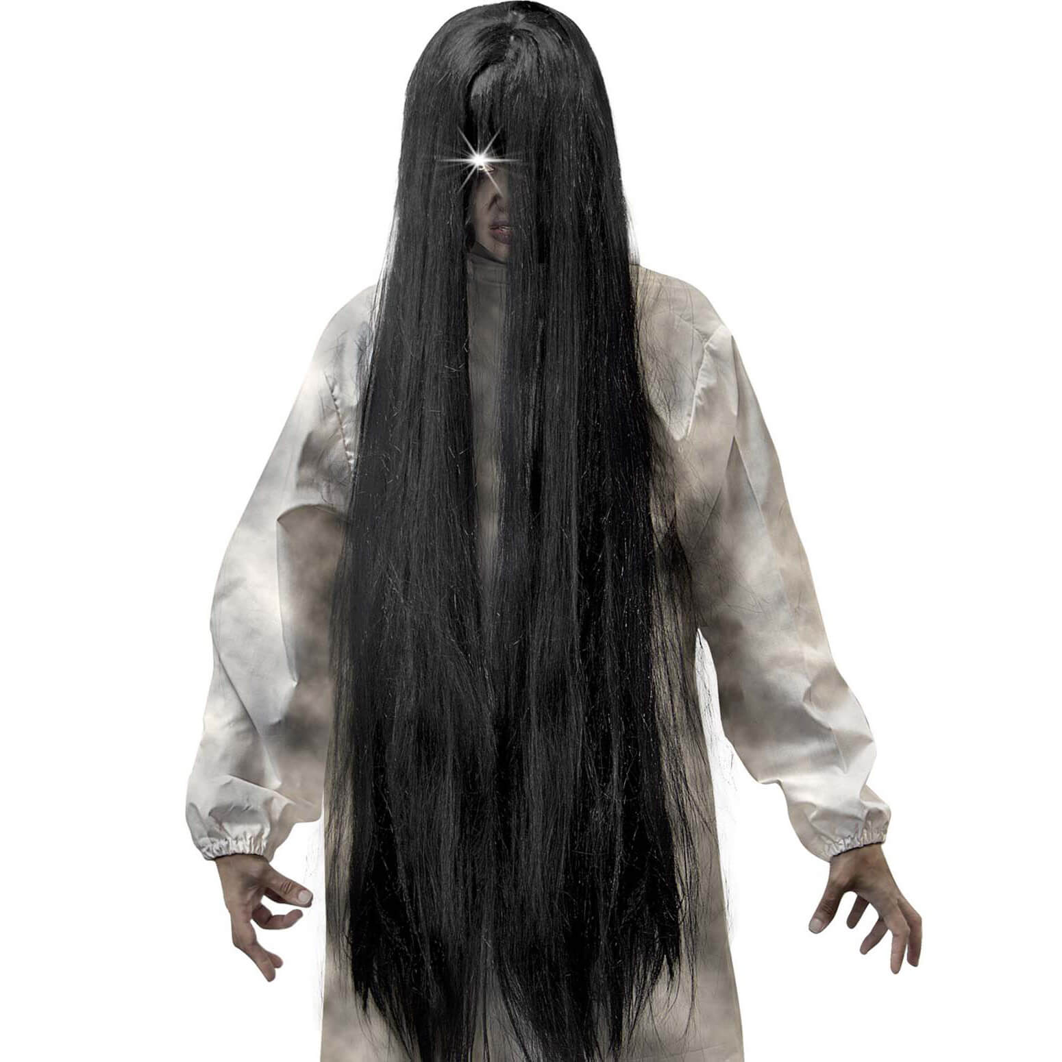 Zombiemädchen genäht Perücke lang glatt Böser Geist Langhaarfrisur extra lang mit Mittelscheitel schwarz