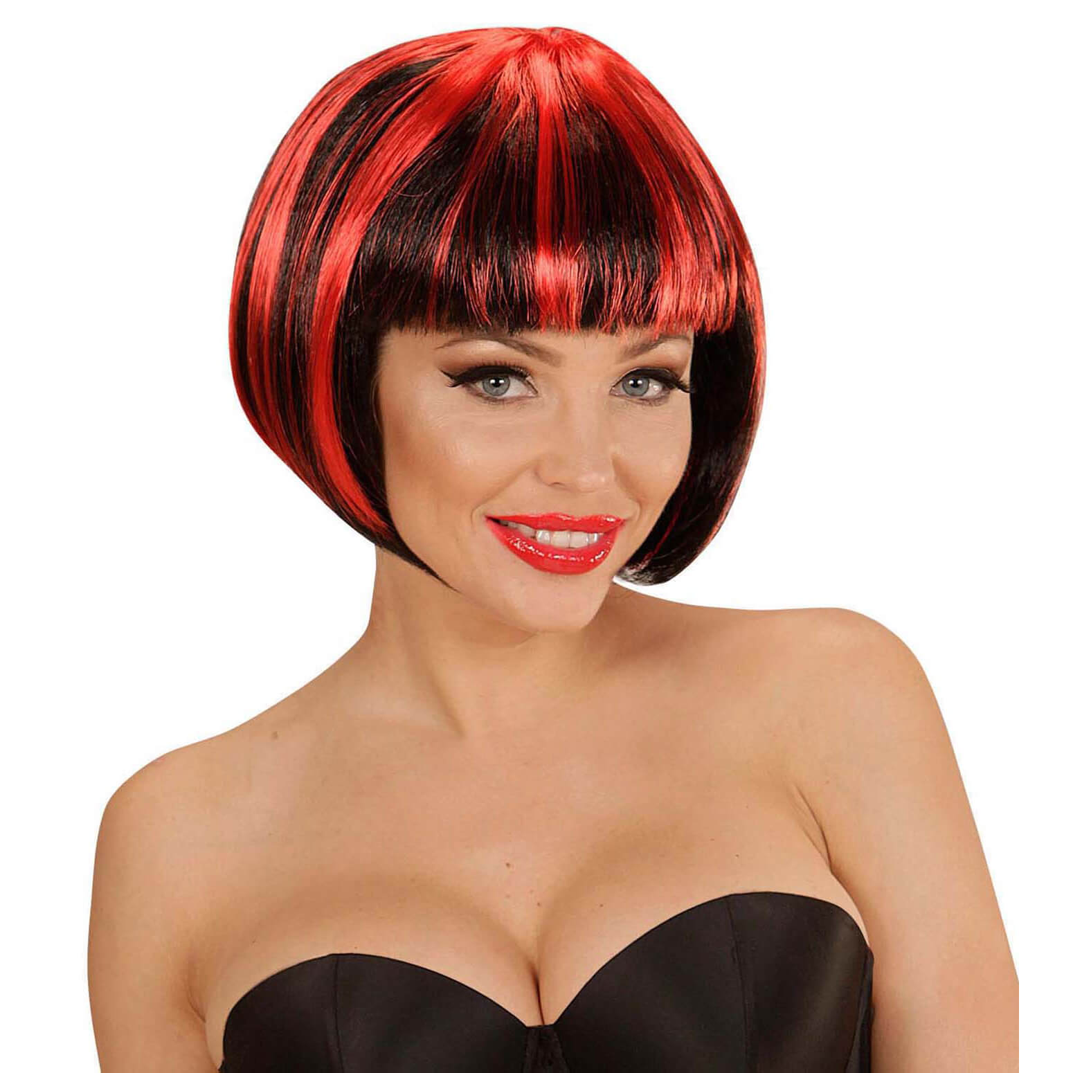 Perücke kurz Bob glatt Streaks Kurzhaarfrisur Pagenschnitt rund ausl. mit Pony u. Strähnen zweifarbig schwarz-rot – (ARTIKEL/REFERNZ: 8003558049523/WI04952 – Kategorie/Suche: – Hersteller: Widmann S.r.l.)