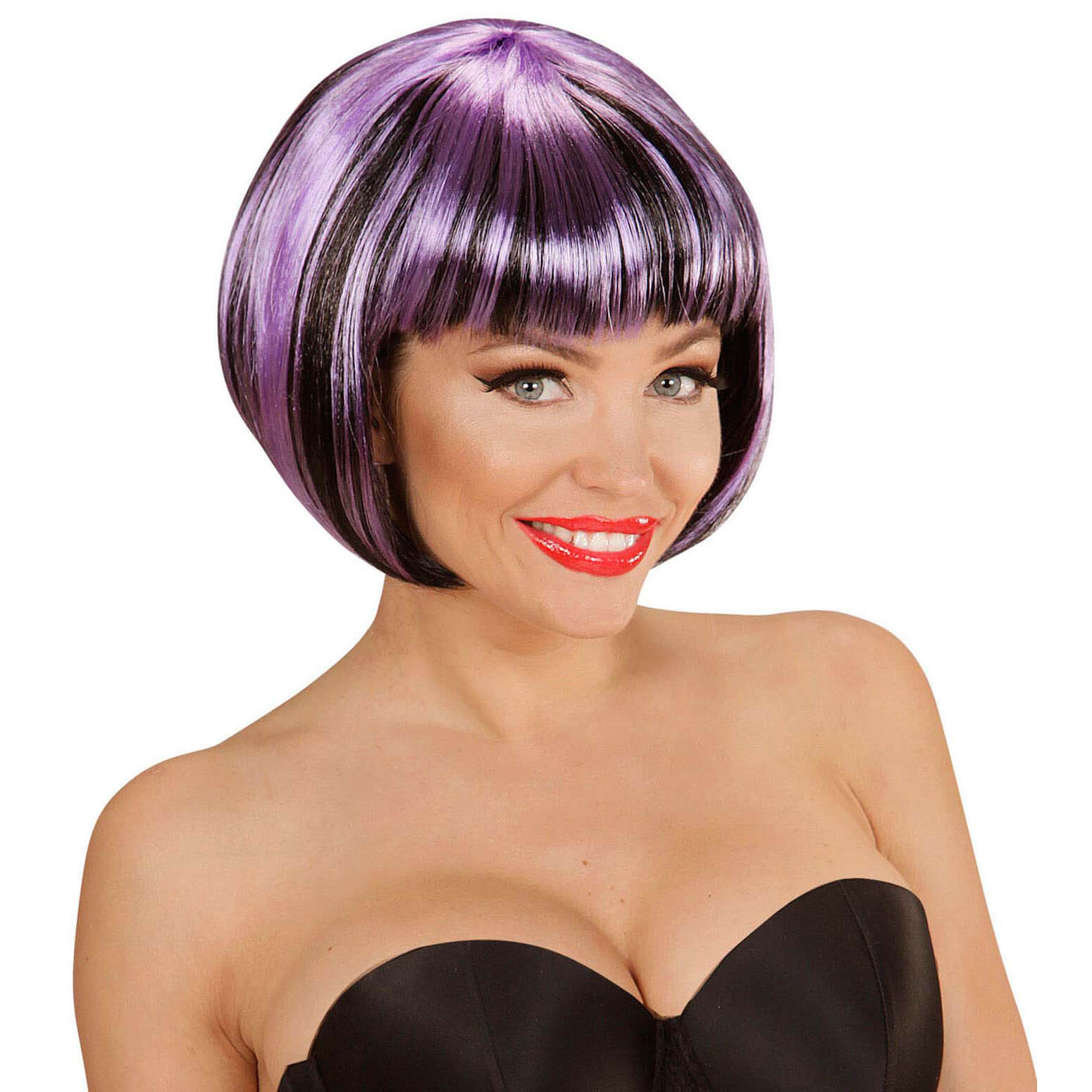 Perücke kurz Bob glatt Streaks Kurzhaarfrisur Pagenschnitt rund ausl. mit Pony u. Strähnen zweifarbig schwarz-lila – (ARTIKEL/REFERNZ: 8003558049554/WI04955 – Kategorie/Suche: – Hersteller: Widmann S.r.l.)