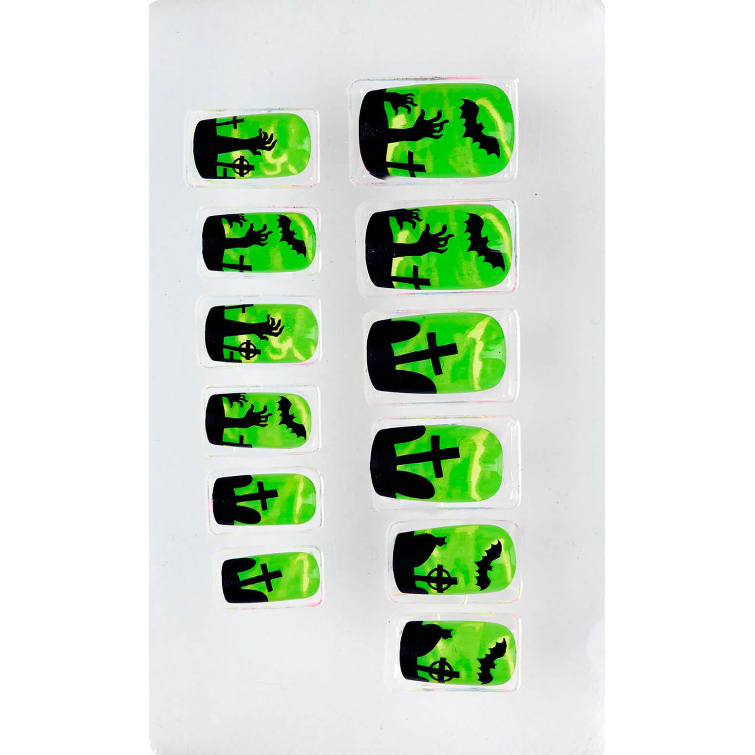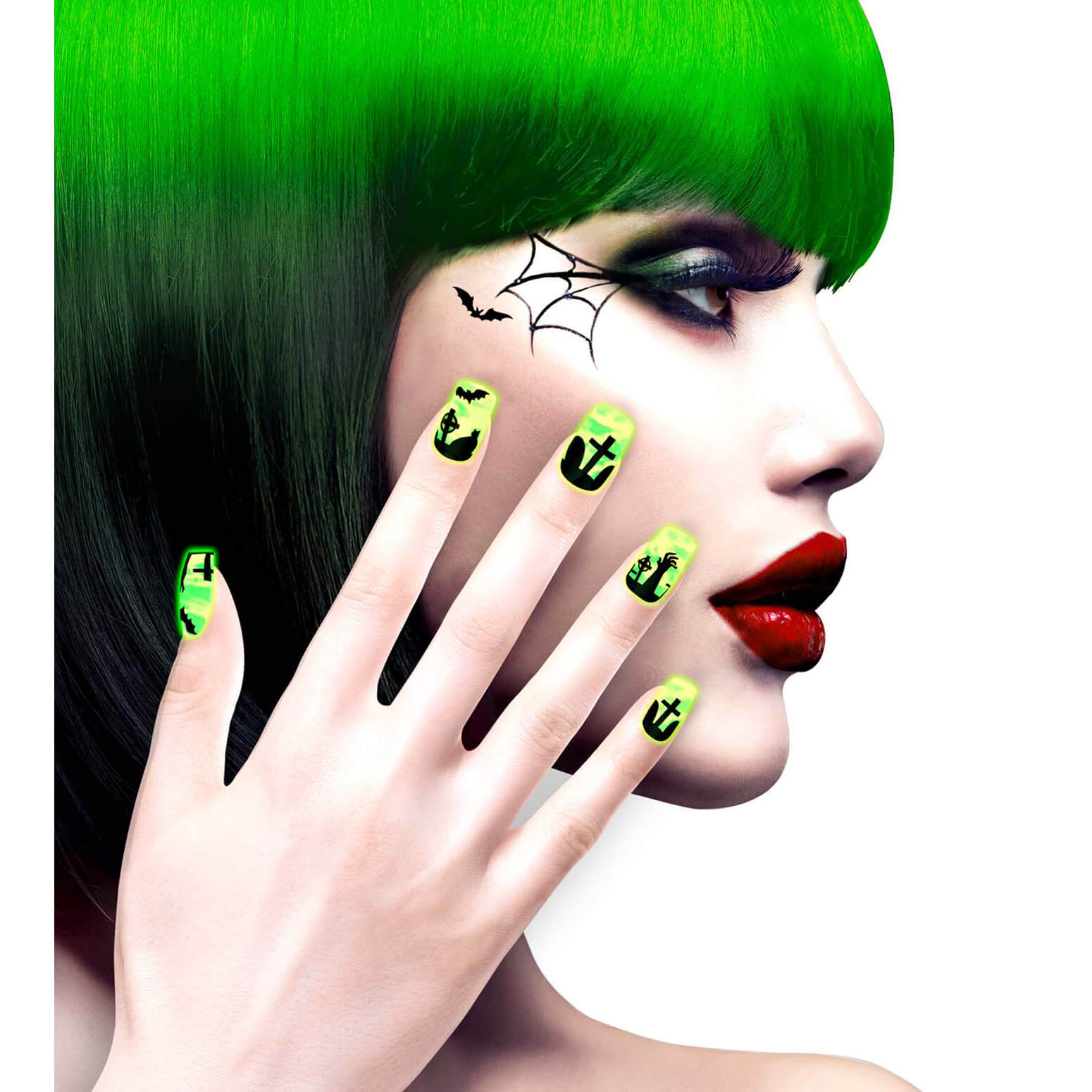 Vampirin / Hexe Künstliche Fingernägel zum Aufkleben Deluxe UV-neongrün