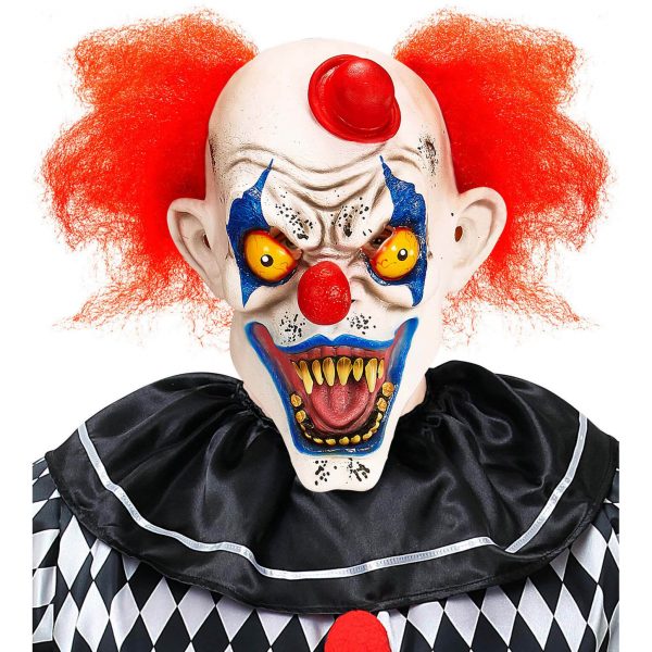 Böser Clown Latexmaske mit Haar mit zwei Haarbüscheln und Minihut rot-blau – (ARTIKEL/REFERNZ: 8003558054022/WI05402 – Kategorie/Suche: Stephen King ES IT Horrorclown Pennywise – Hersteller: Widmann S.r.l.)