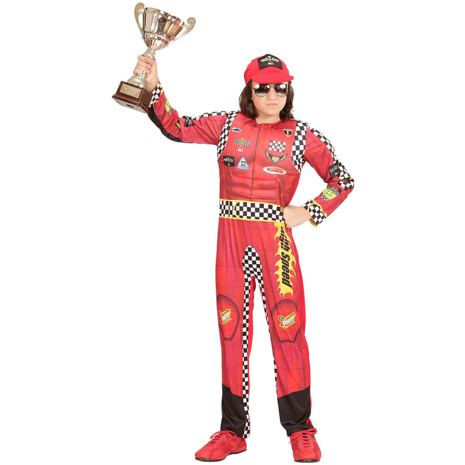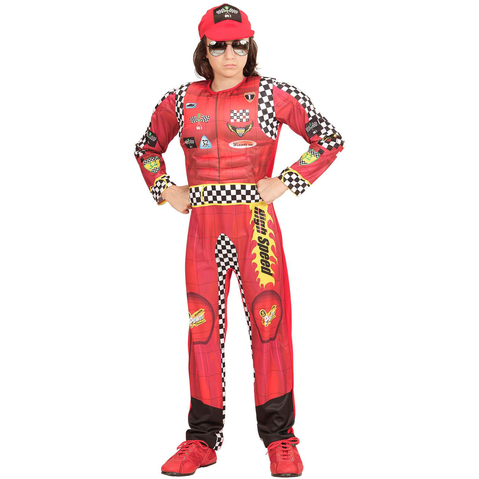 Rennfahrer Kinderkostüm Overall mit Mütze rot