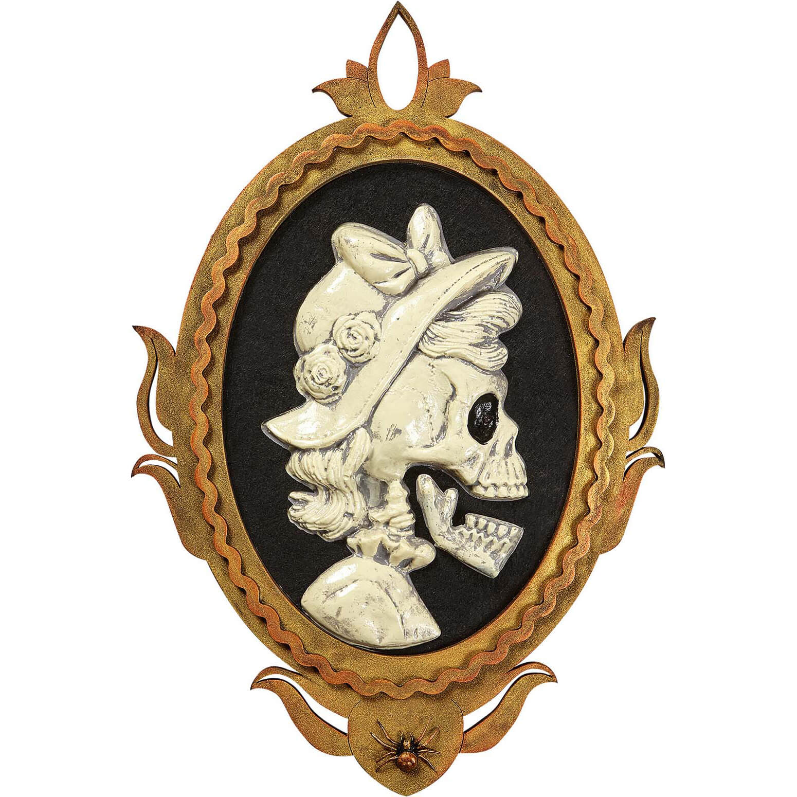 Skelettdame bleich Deko Wandbild animiert+LED+Sound Schädel Lady mit blinke Augen und lachendem Kiefer 32x48cm beige – (ARTIKEL/REFERNZ: 8003558058174/WI05817 – Kategorie/Suche: Dia de los Muertos Catrina Tag der Toten – Hersteller: Widmann S.r.l.)