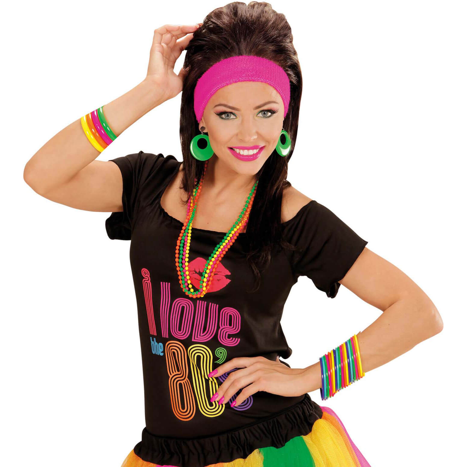 80er Jahre Perlenketten Set in neongrün neonorange neongelb neonpink neonbunt – (ARTIKEL/REFERNZ: 8003558058433/WI05843 – Kategorie/Suche: – Hersteller: Widmann S.r.l.)