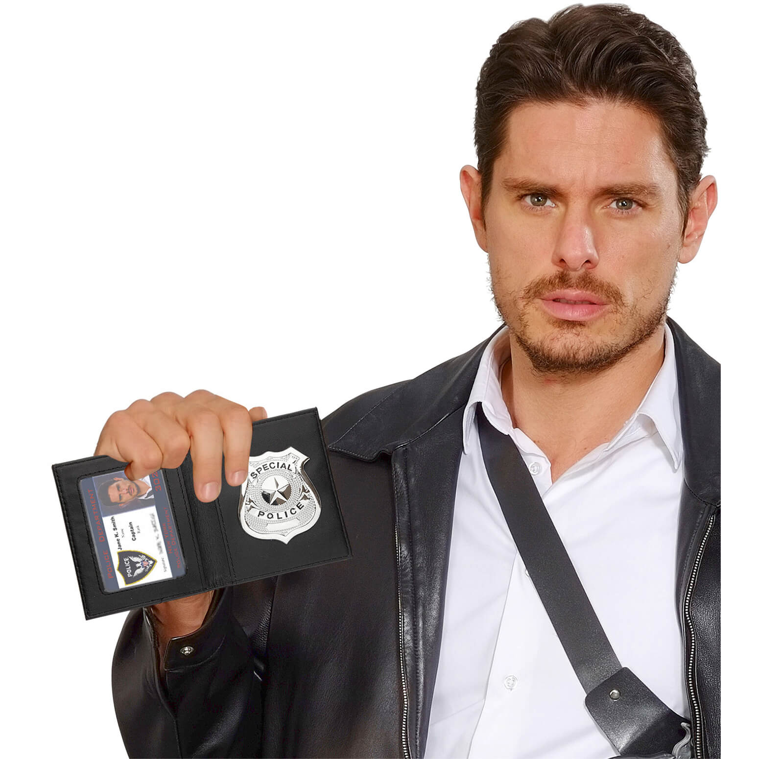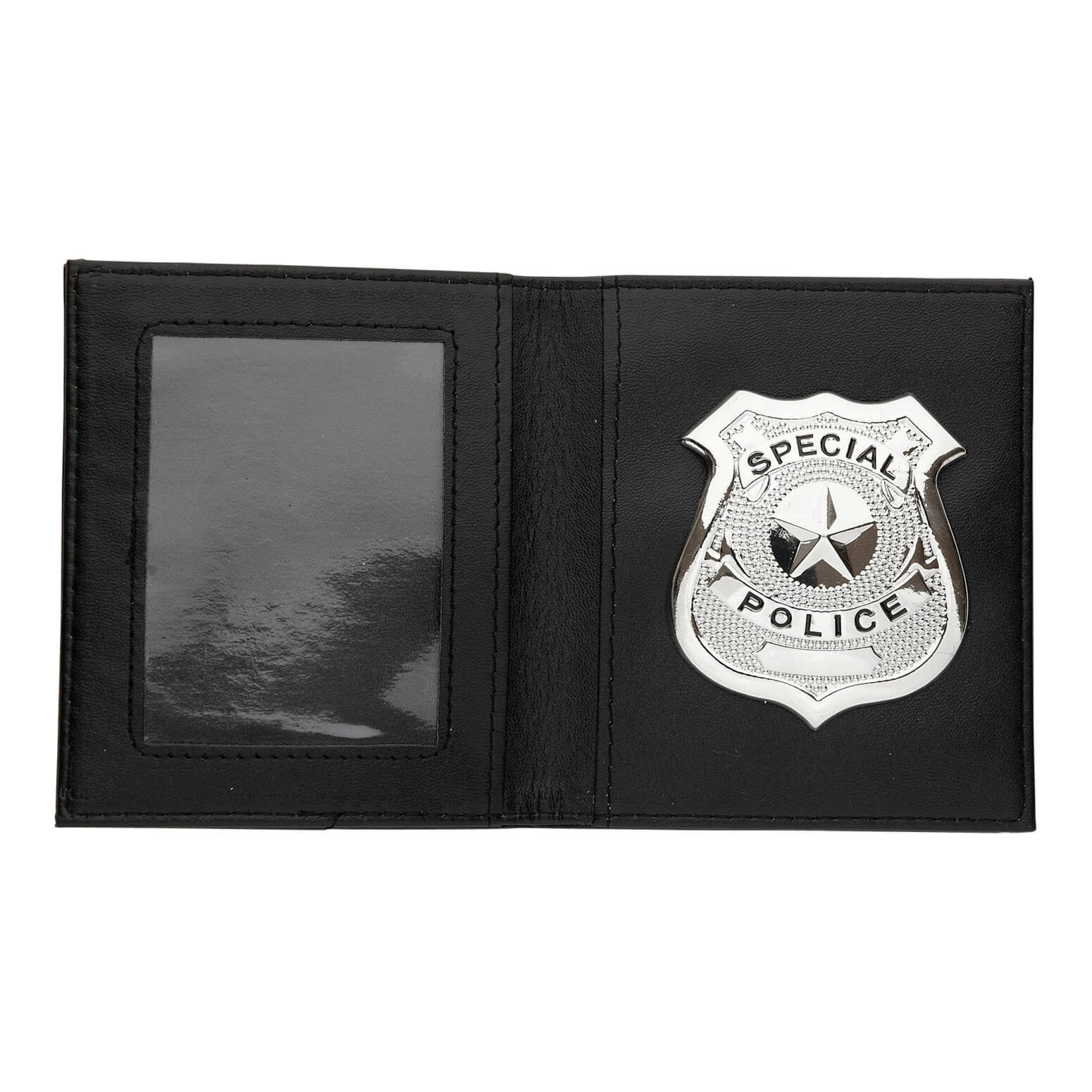 Polizei Brosche Abzeichen Brieftasche Polizeimarke Special Police silber-schwarz