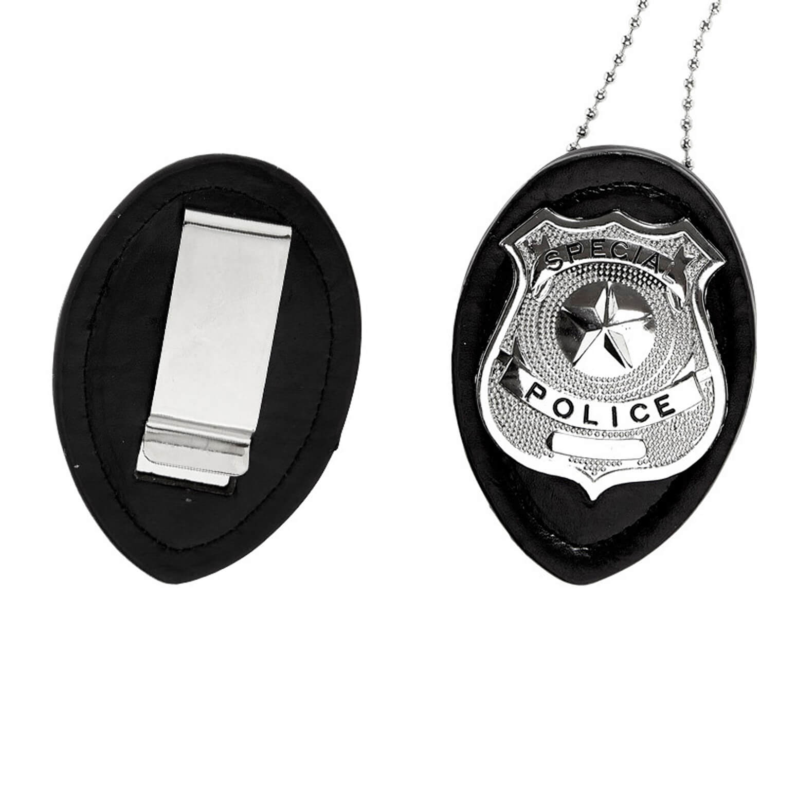 Polizei Brosche Abzeichen an Kette Polizeimarke Special Police auch als Halskette mit Clip silber-schwarz