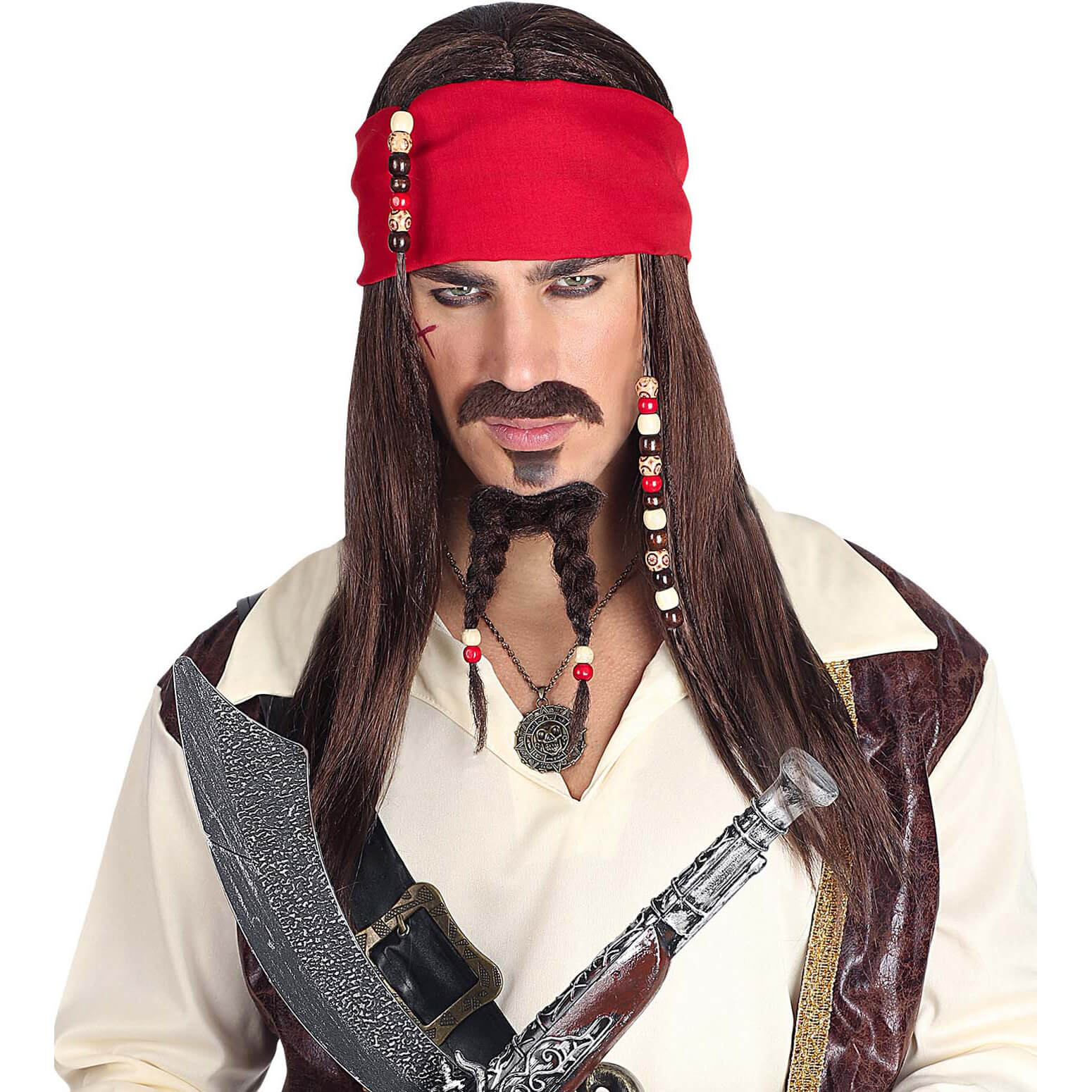 Pirat der Karibik Perücke lang glatt+Kopftuch Langhaarfrisur mit Perlen Zöpfen rotes Stirnband braun – (ARTIKEL/REFERNZ: 8003558063932/WI06393 – Kategorie/Suche: Disney Captain Jack Sparrow Fluch der Karibik – Hersteller: Widmann S.r.l.)