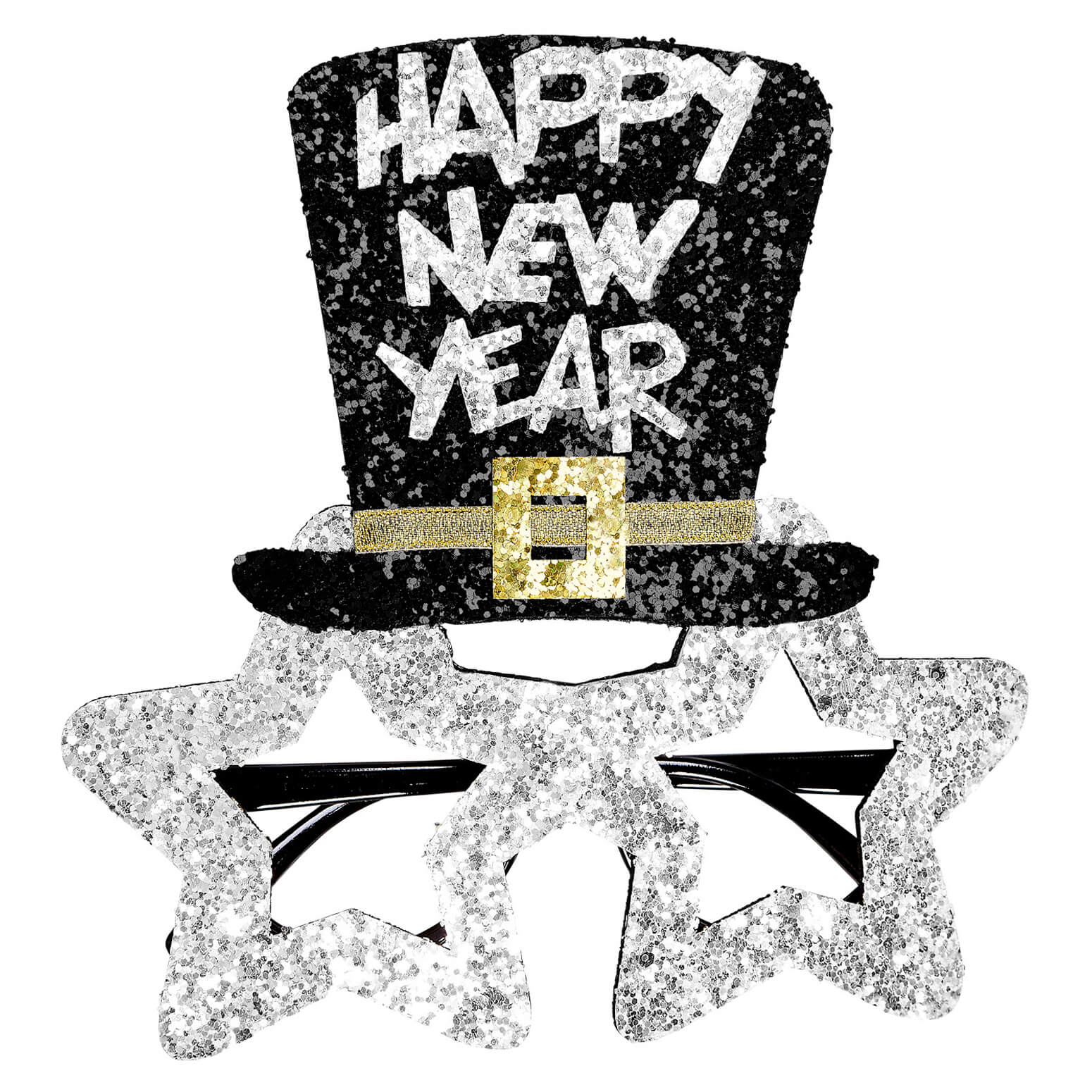 Silvester Motivbrille HAPPY NEW YEAR schwarz-silber