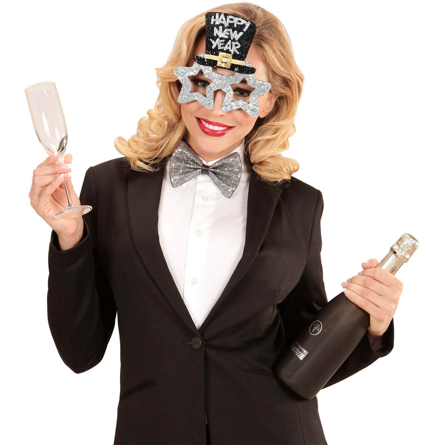 Silvester Motivbrille HAPPY NEW YEAR schwarz-silber – (ARTIKEL/REFERNZ: 8003558070534/WI07053 – Kategorie/Suche: – Hersteller: Widmann S.r.l.)