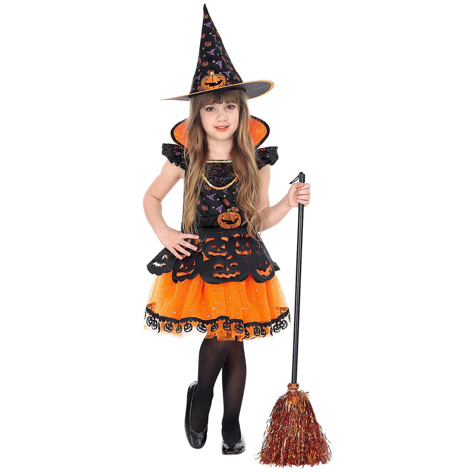Hexe Kürbishexe Kinderkostüm Kleid kurz schwarz-orange – (ARTIKEL/REFERNZ: 8003558070855/WI07085-8003558070862/WI07086-8003558070879/WI07087-8003558070886/WI07088 – Kategorie/Suche: – Hersteller: Widmann S.r.l.)
