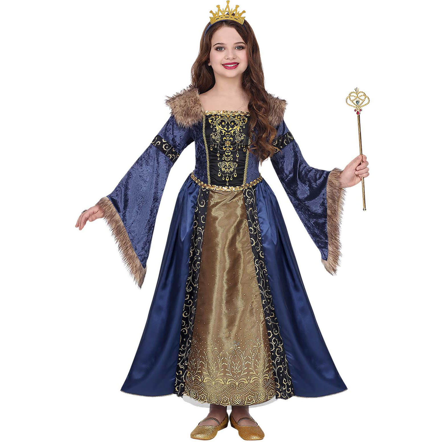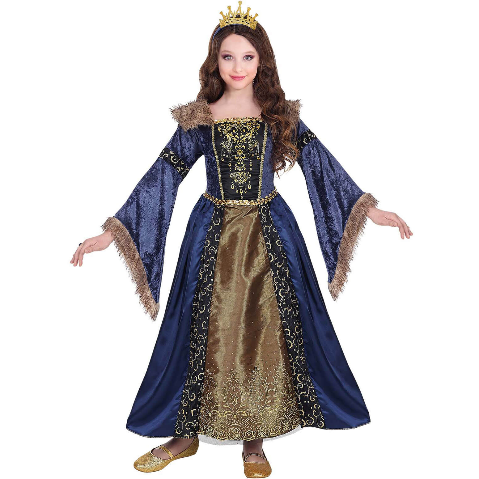 Edeldame Königin Kinderkostüm Kleid lang mit Samt und Plüsch dunkelblau-gold – (ARTIKEL/REFERNZ: 8003558071364/WI07136-8003558071371/WI07137-8003558071388/WI07138 – Kategorie/Suche: – Hersteller: Widmann S.r.l.)