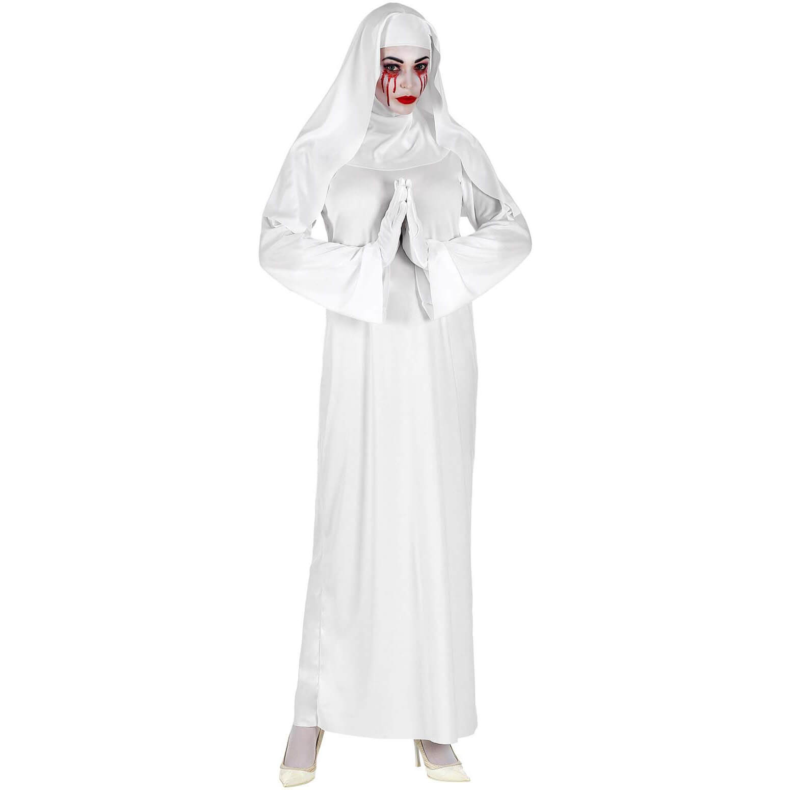 Geister Nonne Kostüm Kleid lang weiß