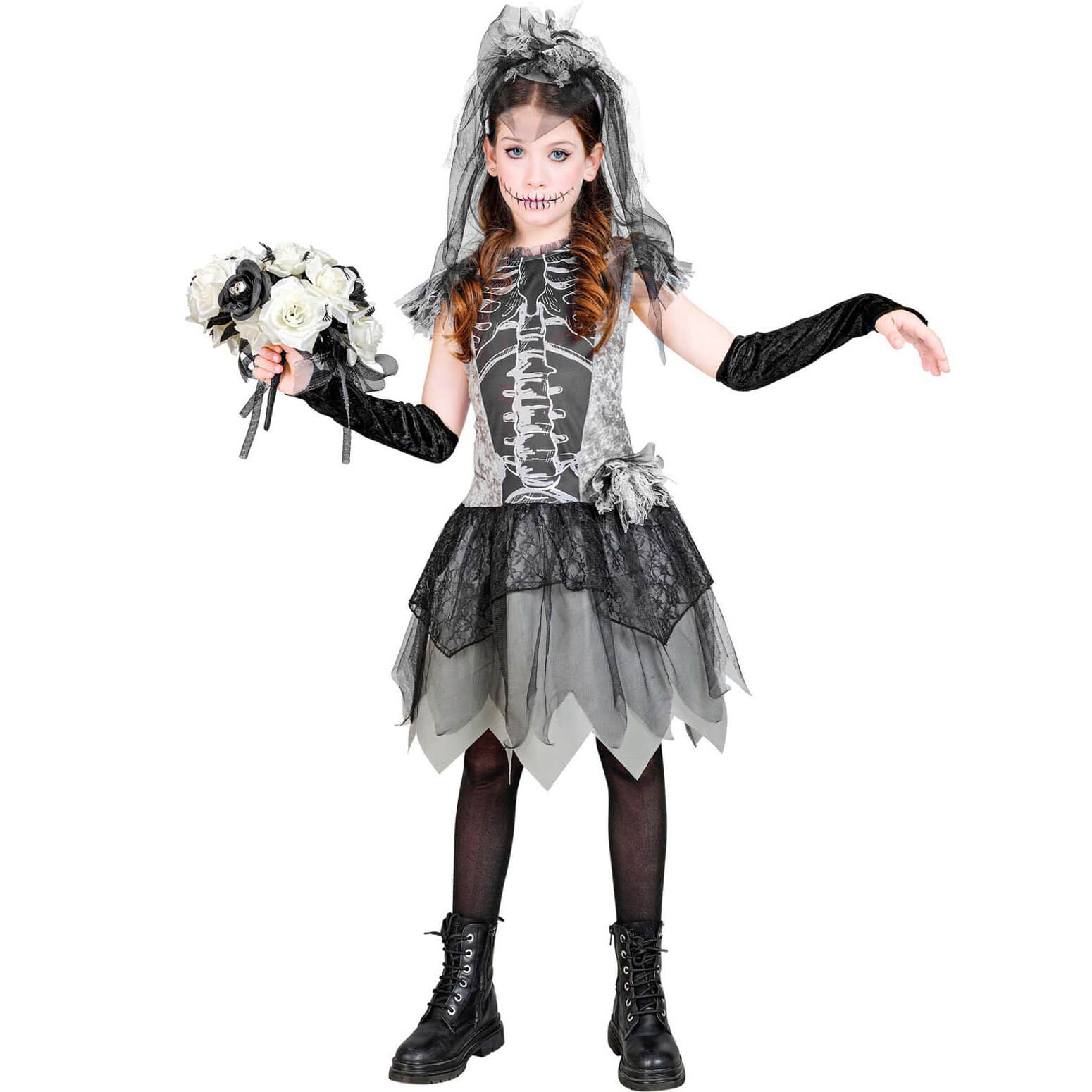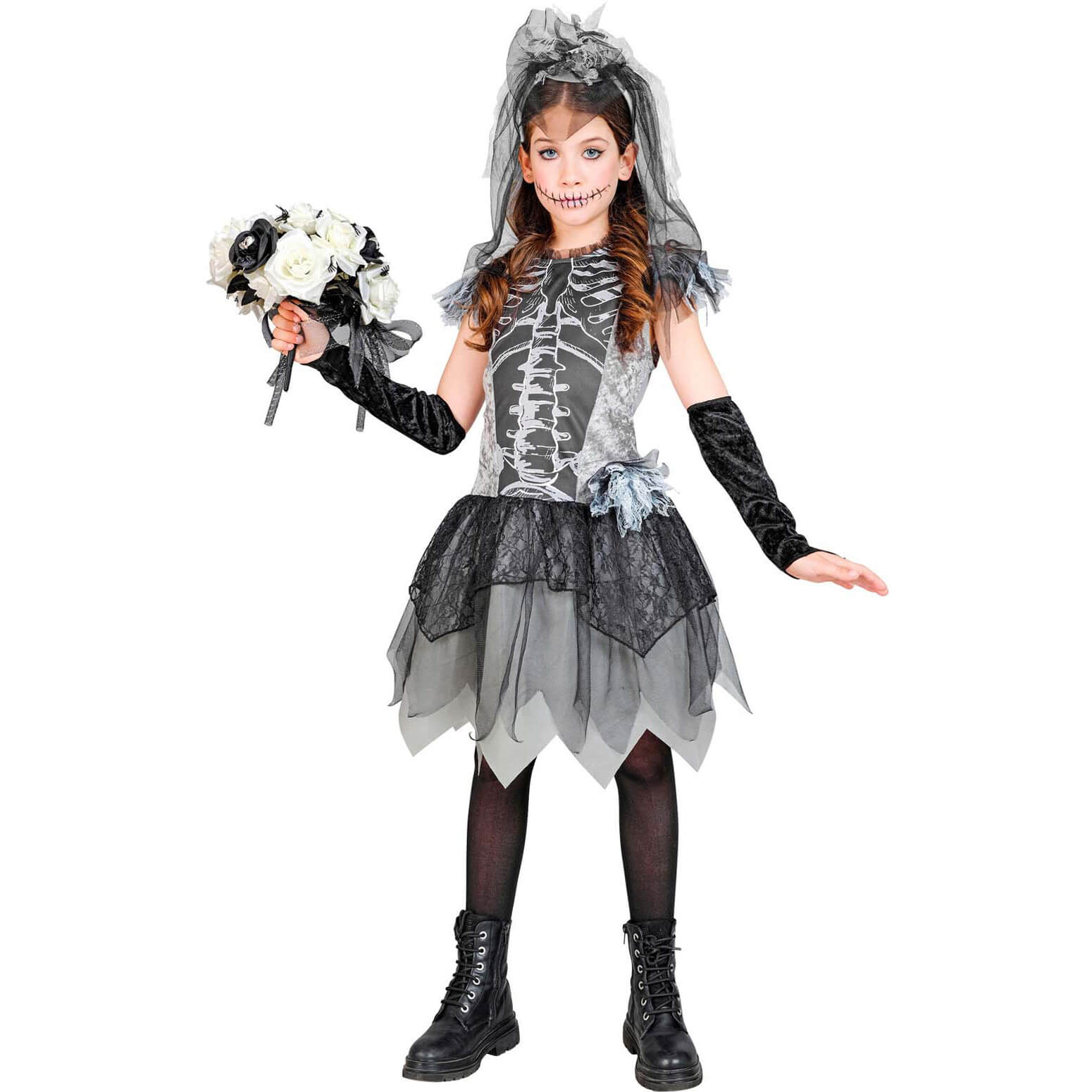 Skelett Braut Kinderkostüm Kleid kurz Skelebride mit Skelettbrustkorb Handschuhen und Schleier grau-schwarz – (ARTIKEL/REFERNZ: 8003558075850/WI07585-8003558075867/WI07586-8003558075874/WI07587-8003558075881/WI07588 – Kategorie/Suche: – Hersteller: Widmann S.r.l.)