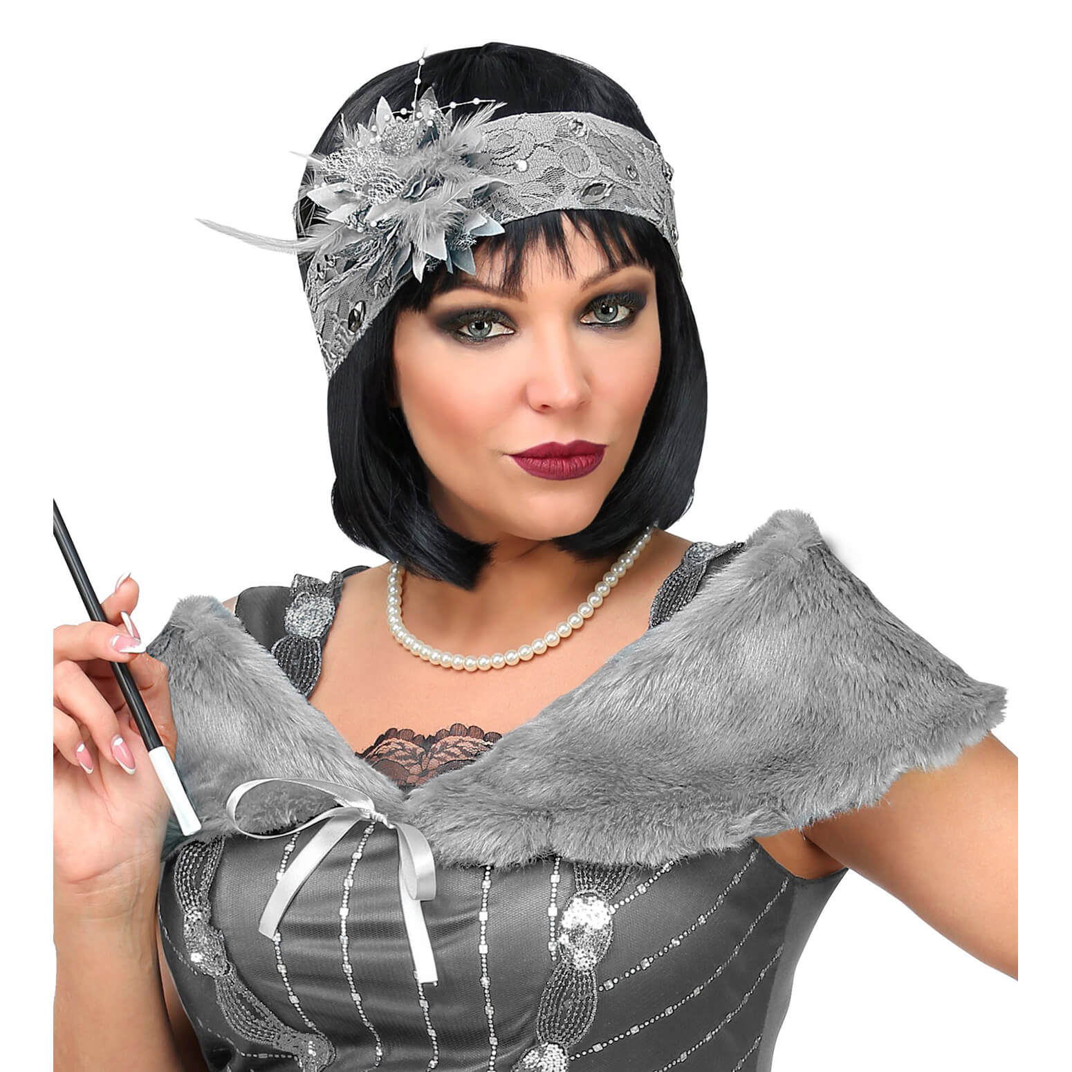 20er Jahre Charleston Schmuckkragen+Stirnband Set falsche Pelzstola mit Paillettenstirnband grau – (ARTIKEL/REFERNZ: 8003558078042/WI07804 – Kategorie/Suche: – Hersteller: Widmann S.r.l.)
