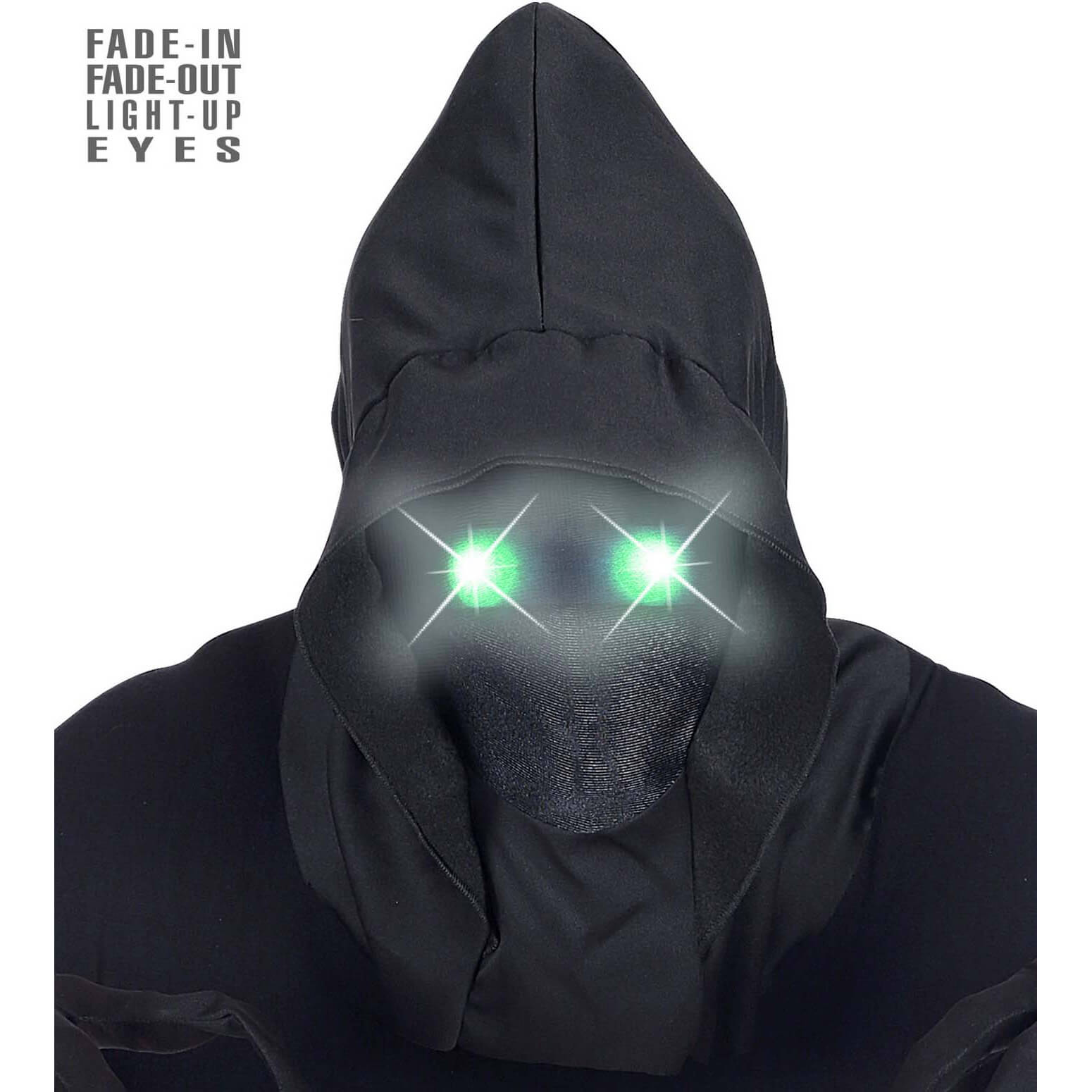 Geist Stoffmaske mit LED mit Blinkaugen schwarz-grün – (ARTIKEL/REFERNZ: 8003558078097/WI07809 – Kategorie/Suche: – Hersteller: Widmann S.r.l.)