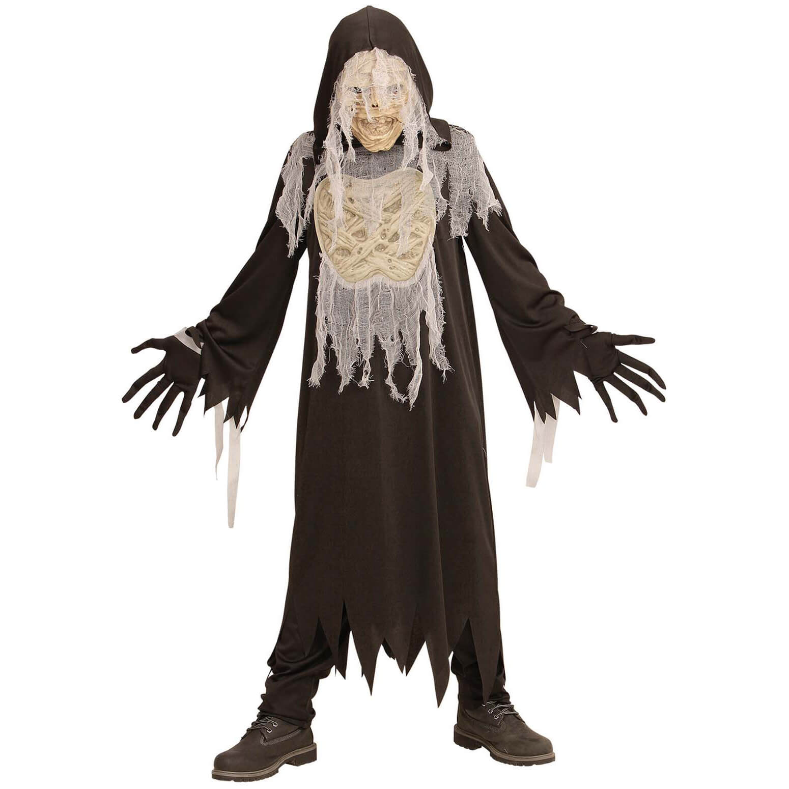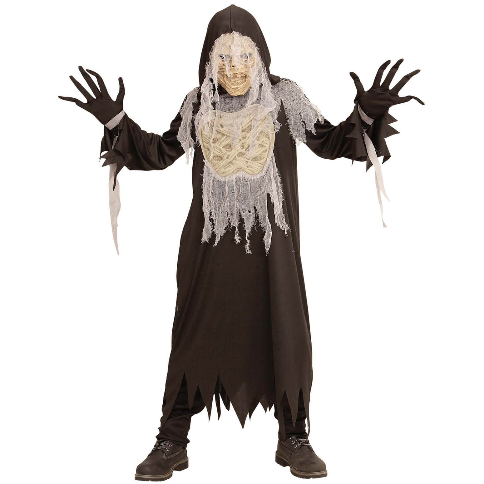 Mumie Kostüm Robe Tunika lang mit 3D Skellettbrustkorb Handschuhen und Maske schwarz-beige – (ARTIKEL/REFERNZ: 8003558078523/WI07852-8003558078547/WI07854 – Kategorie/Suche: – Hersteller: Widmann S.r.l.)