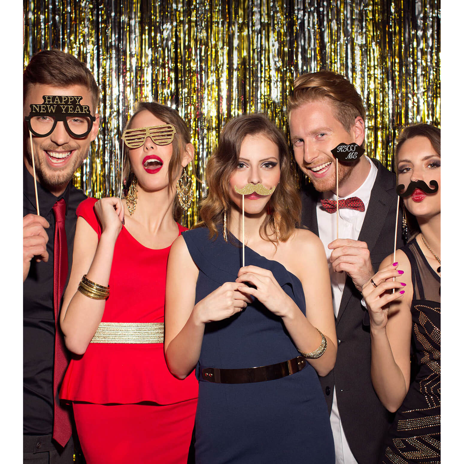 Silvester Deko Fotobox Set Happy New Year mit Glitzer Photobox Tischdekoration schwarz-gold