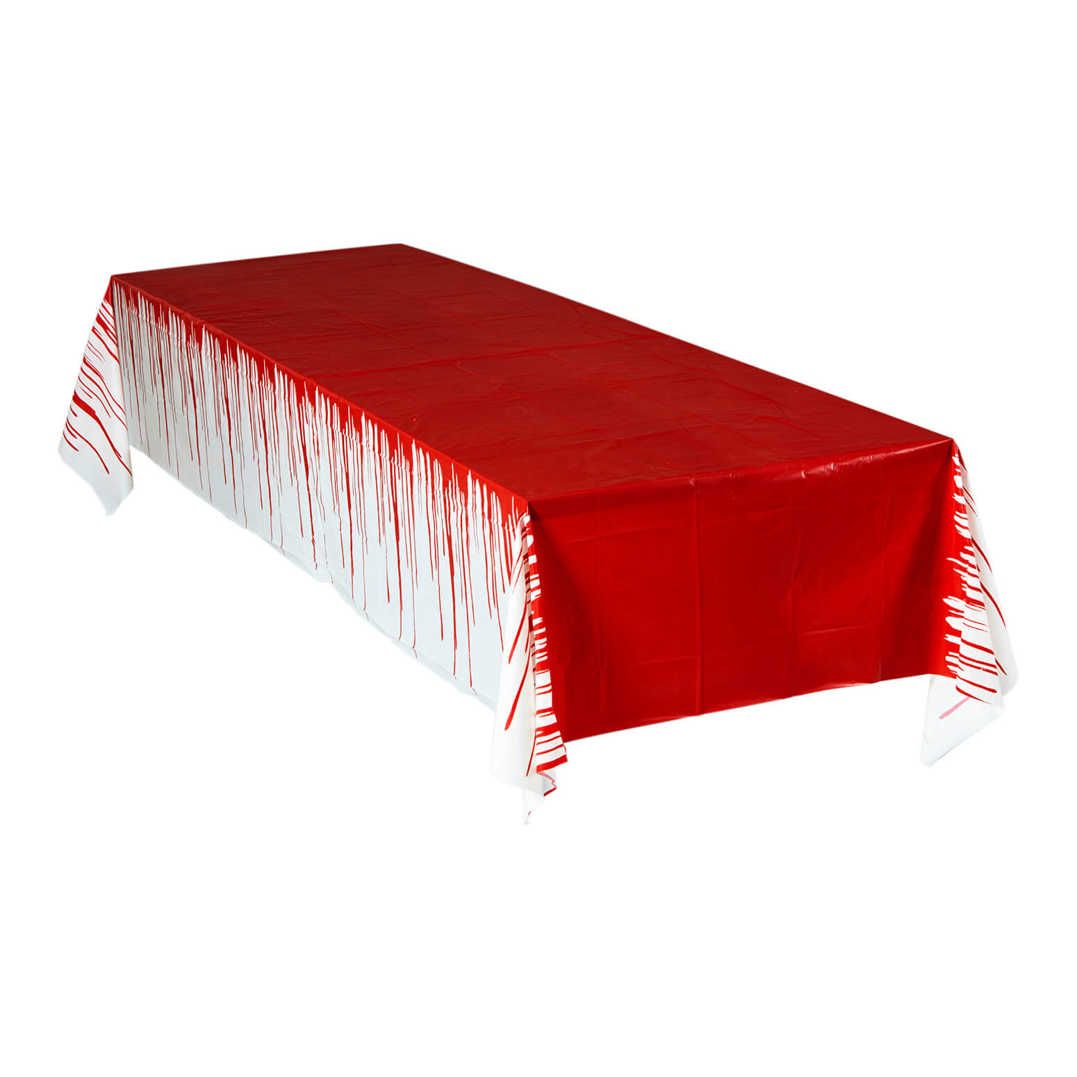 Blutige Einweggeschirr Tischdecke 135x275cm aus Kunststoff herunterlaufendes Blut weiß-rot