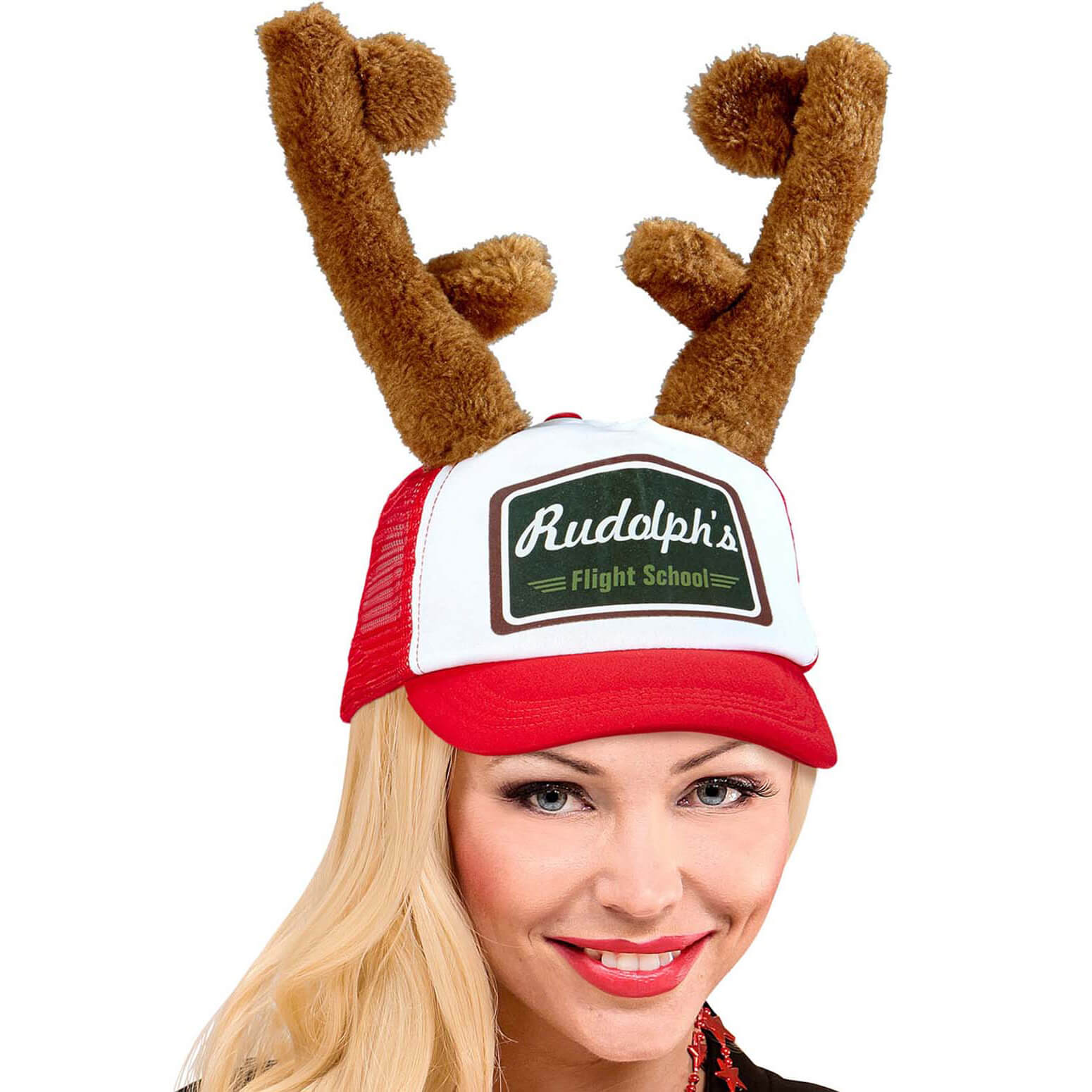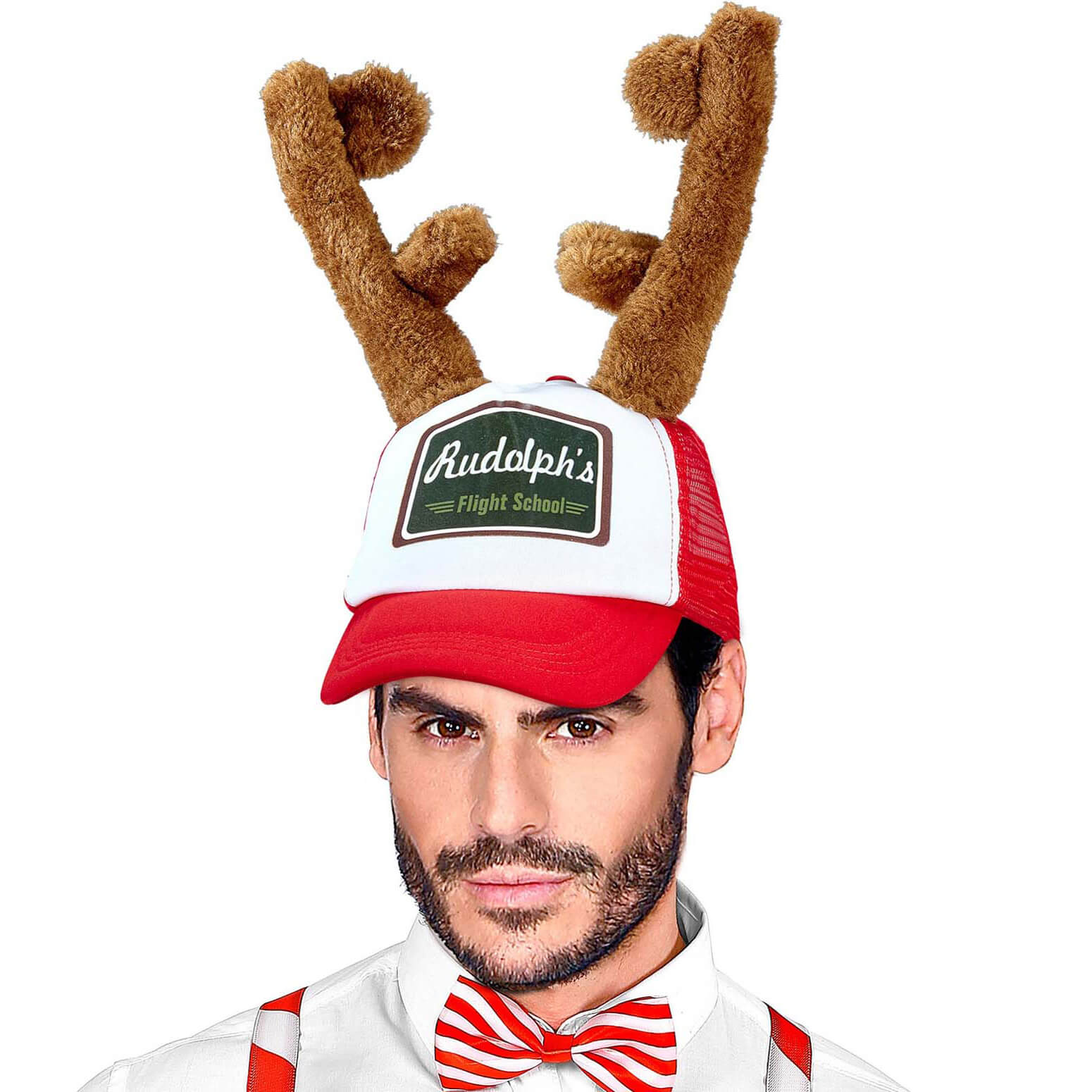 Rentier Weihnachts Deko Schildmütze mit Hörnern Plüsch Rudolph Flight School rot-braun – (ARTIKEL/REFERNZ: 8003558081691/WI08169 – Kategorie/Suche: – Hersteller: Widmann S.r.l.)