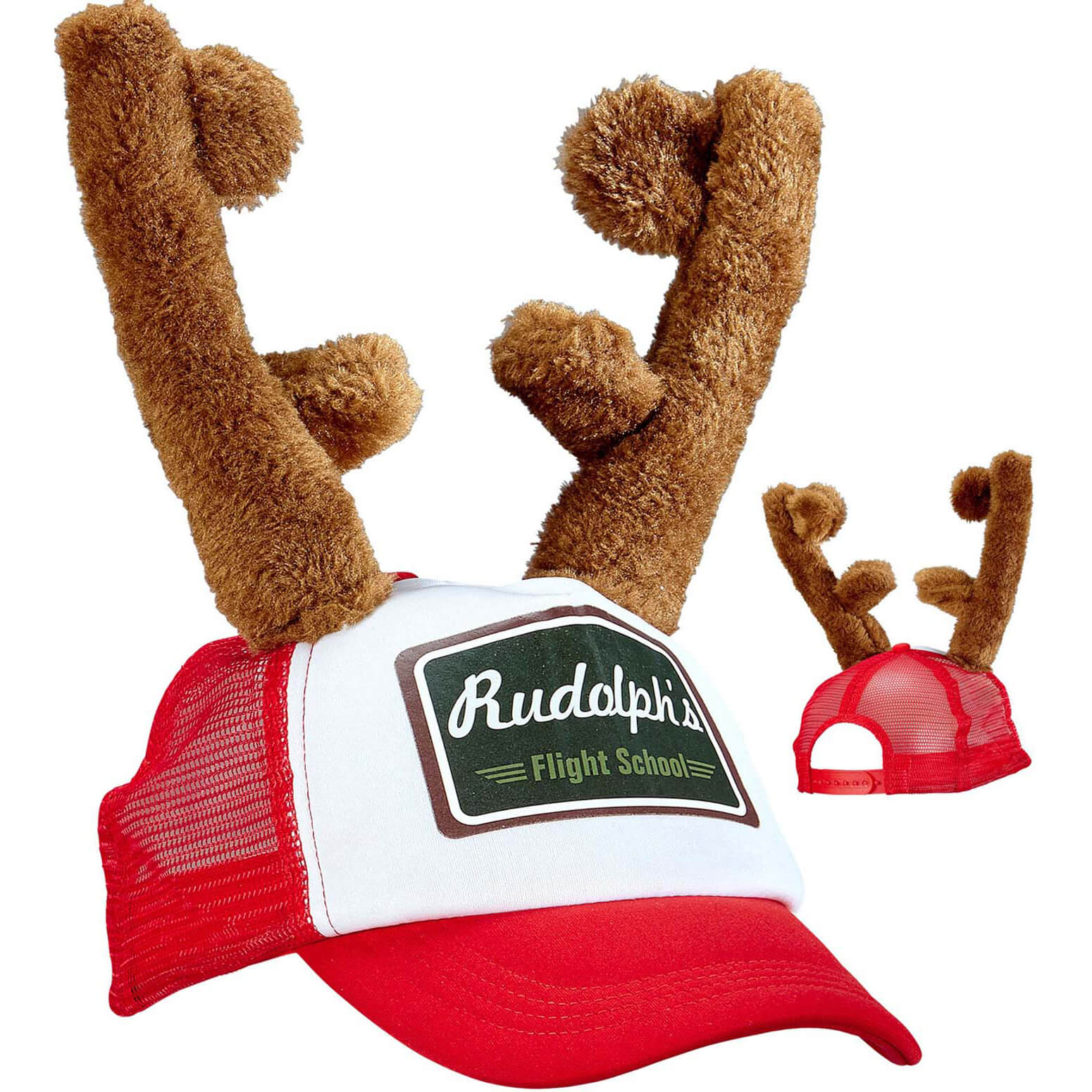 Rentier Weihnachts Deko Schildmütze mit Hörnern Plüsch Rudolph Flight School rot-braun
