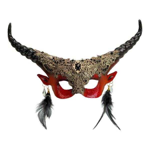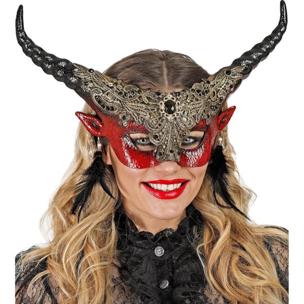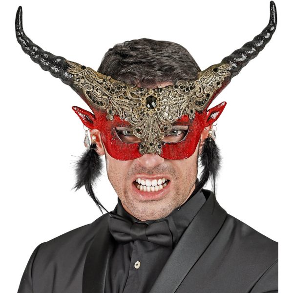 Teufel/Dämon Dominomaske mit Hörnern Halbmaske Deluxe mit Spitze und Federn rot-schwarz – (ARTIKEL/REFERNZ: 8003558084845/WI08484 – Kategorie/Suche: – Hersteller: Widmann S.r.l.)