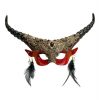 Teufel / Dämon Dominomaske mit Hörnern Halbmaske Deluxe mit Spitze und Federn rot-schwarz