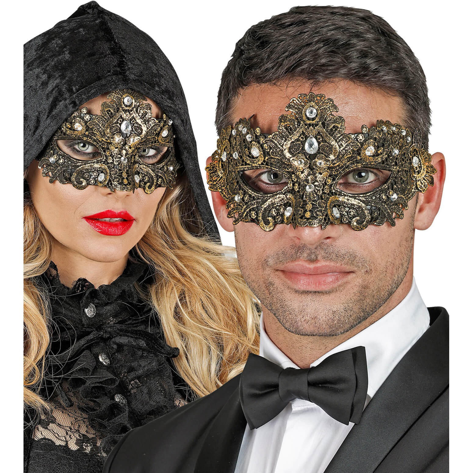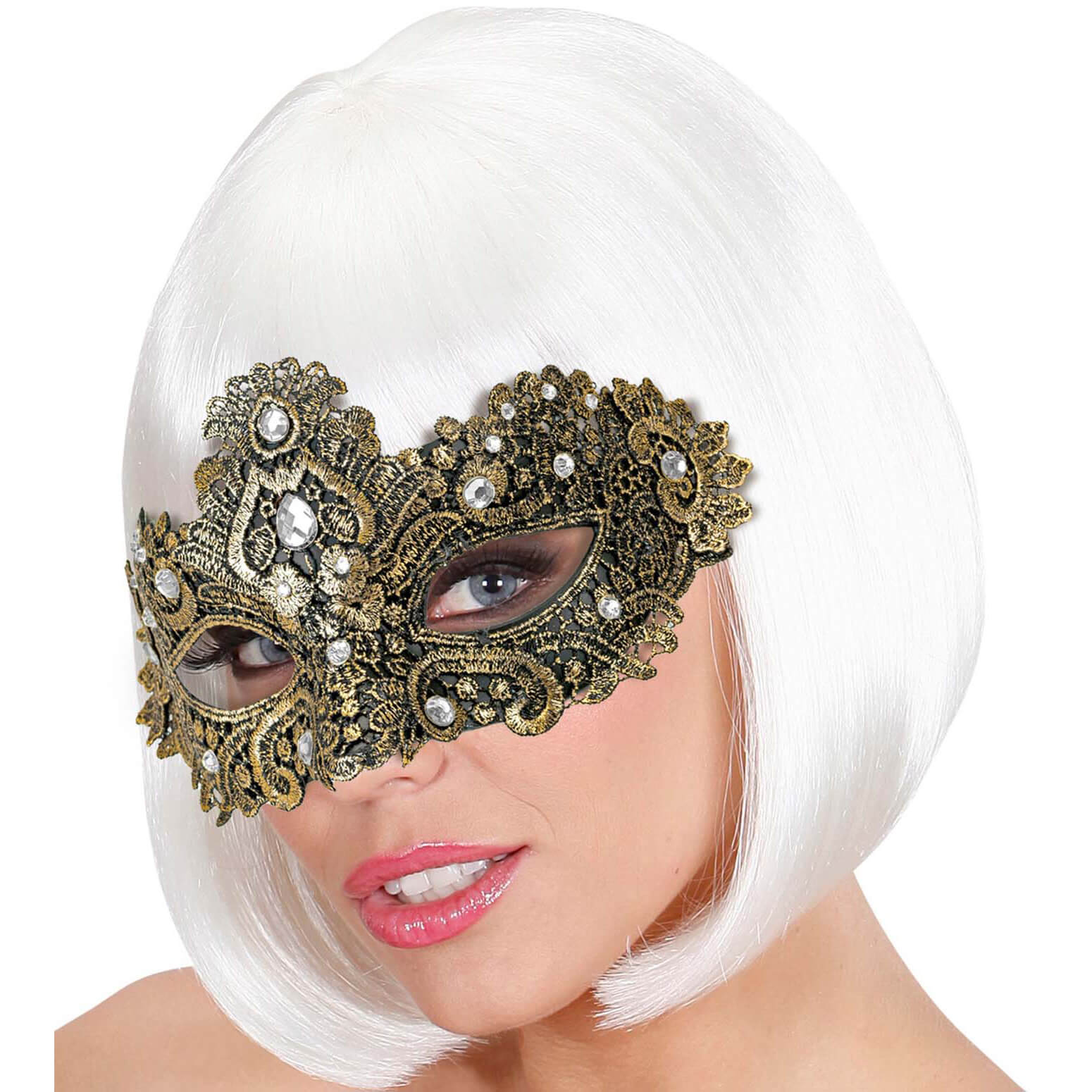 Edle venezianische Dominomaske Halbmaske mit Spitzenstoffbezug gold – (ARTIKEL/REFERNZ: 8003558084920/WI08492 – Kategorie/Suche: – Hersteller: Widmann S.r.l.)