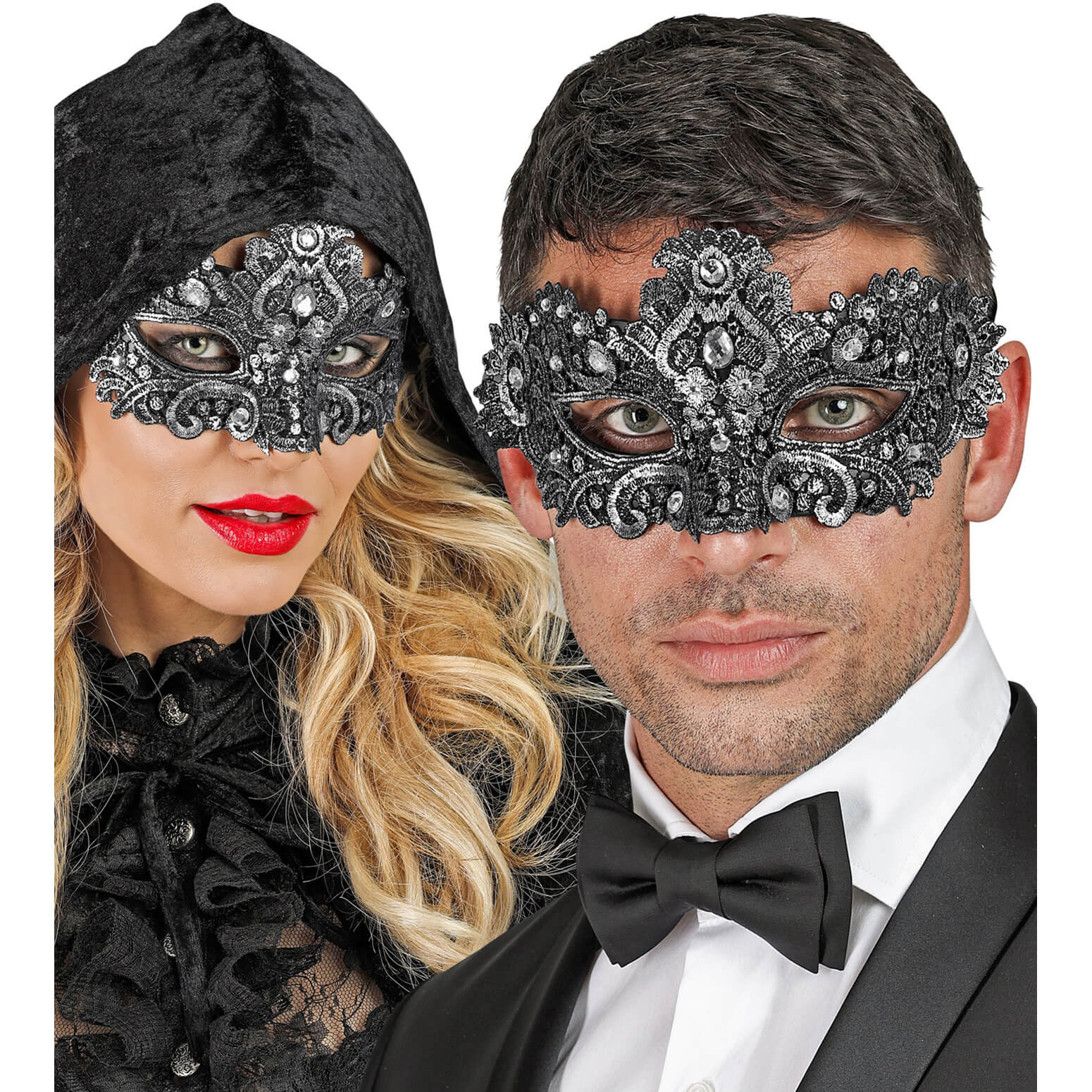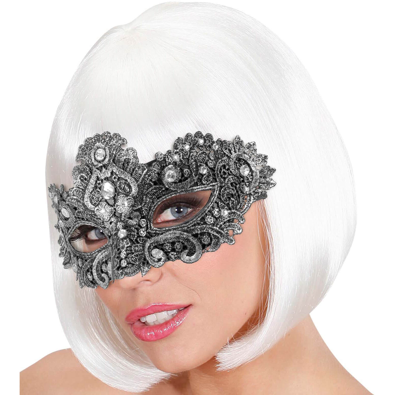 Edle venezianische Dominomaske Halbmaske mit Spitzenstoffbezug silber – (ARTIKEL/REFERNZ: 8003558084937/WI08493 – Kategorie/Suche: – Hersteller: Widmann S.r.l.)