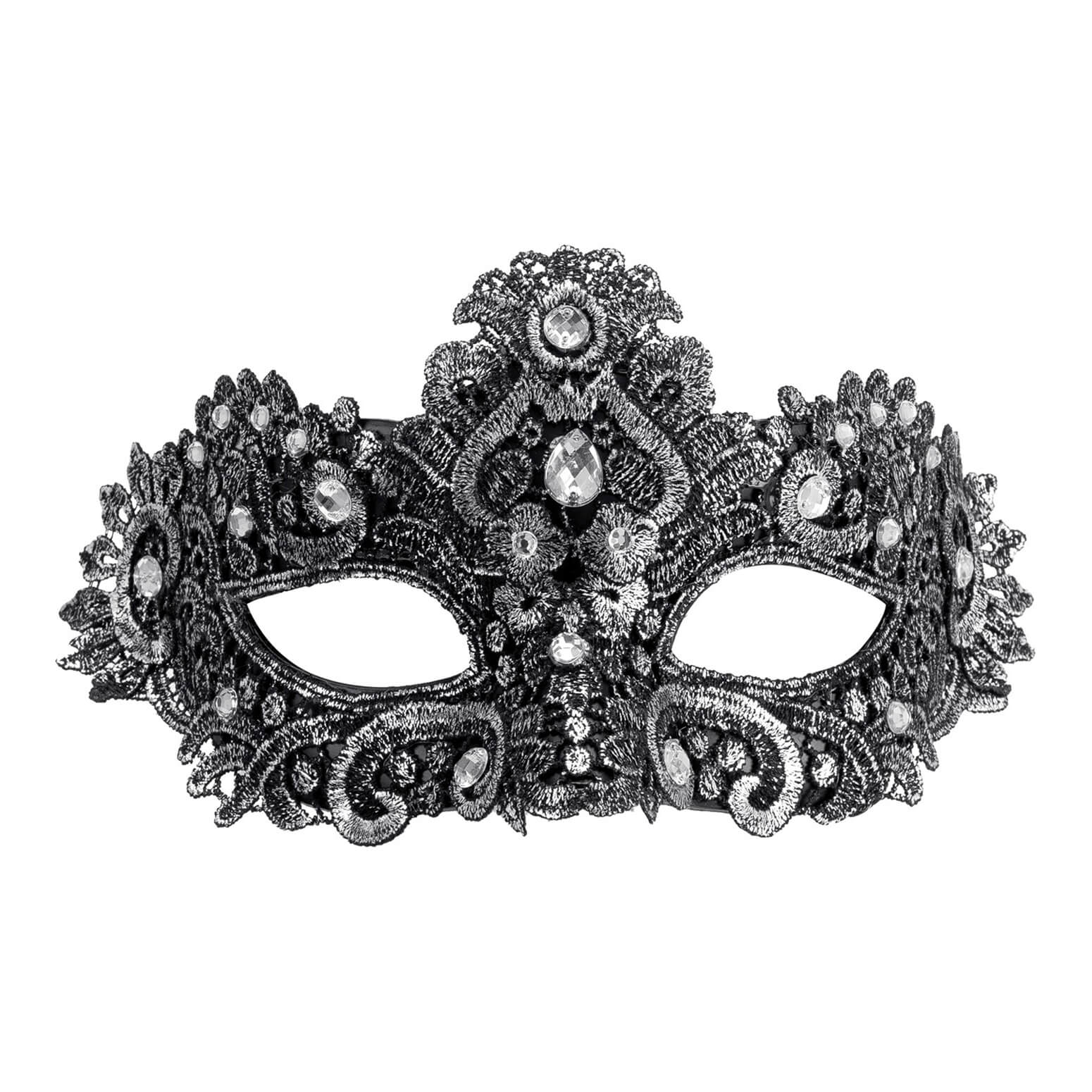 Edle venezianische Dominomaske Halbmaske mit Spitzenstoffbezug silber