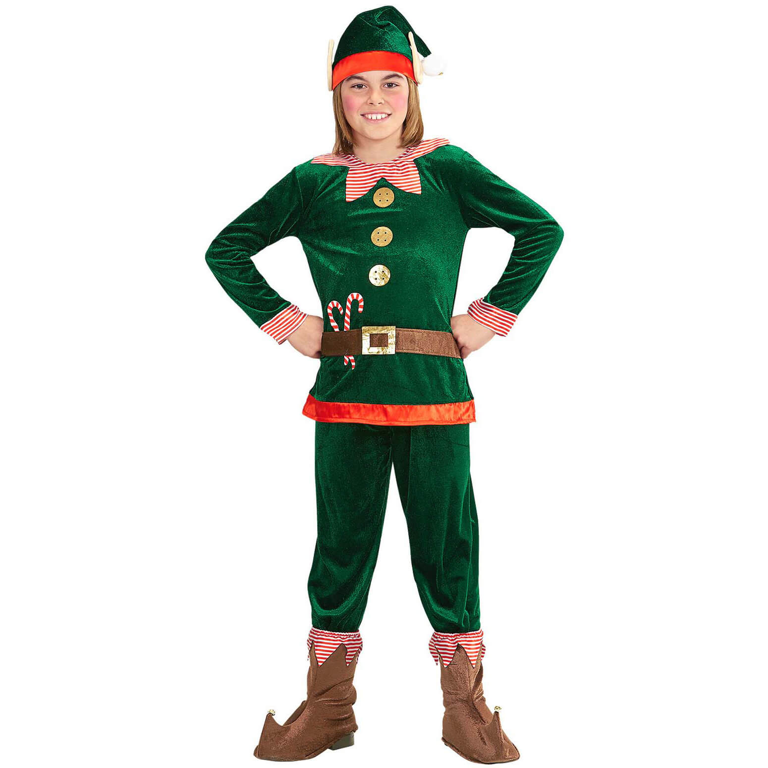 Elf Weihnachtself Kinderkostüm Anzug aus Samt grün-rot – (ARTIKEL/REFERNZ: 8003558087358/WI08735-8003558087389/WI08738 – Kategorie/Suche: – Hersteller: Widmann S.r.l.)
