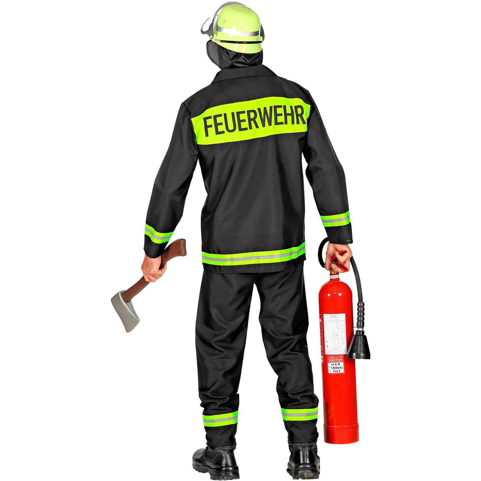 Feuerwehrmann Kostüm Anzug mit Schriftzug FEUERWEHR schwarz-gelb – (ARTIKEL/REFERNZ: 8003558088218/WI08821-8003558088225/WI08822-8003558088232/WI08823-8003558088249/WI08824 – Kategorie/Suche: – Hersteller: Widmann S.r.l.)