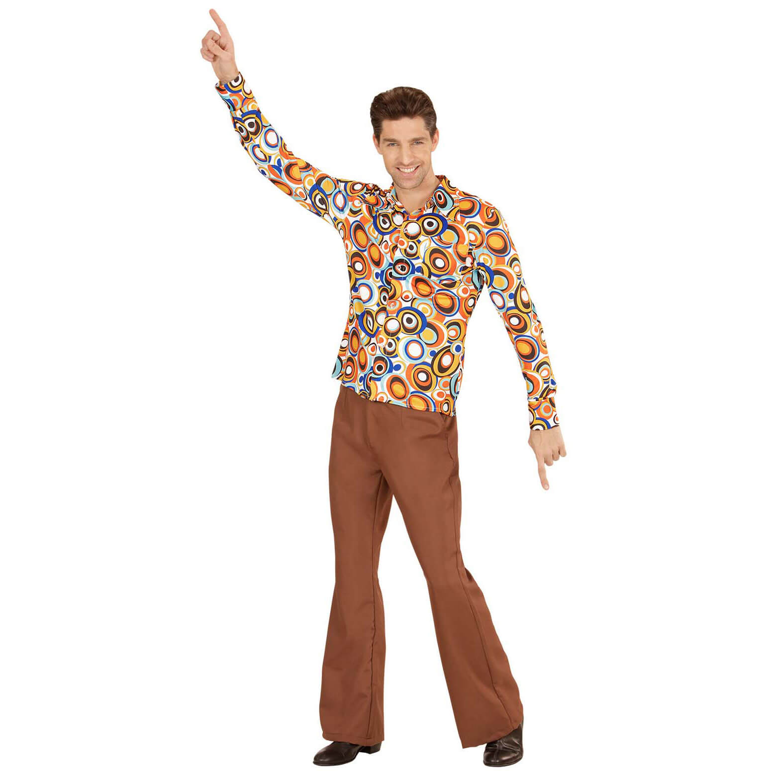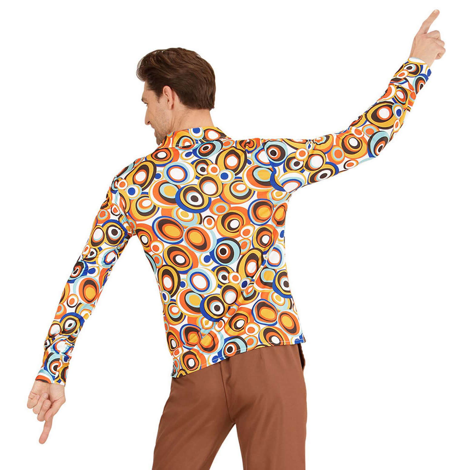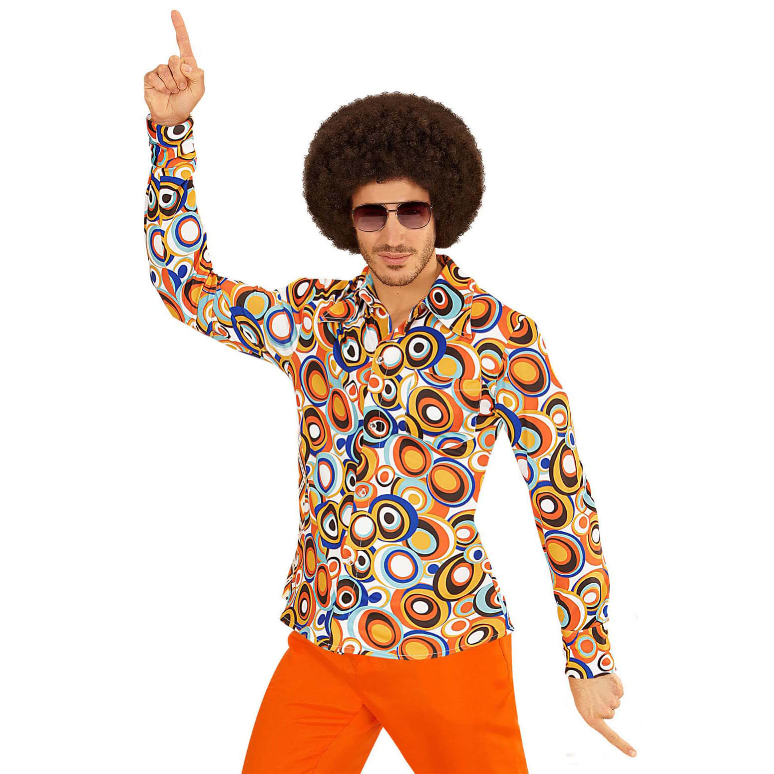 70er Jahre Hippie Hemd Bluse mit Elastan Motiv Groovy Bubbles orange-blau – (ARTIKEL/REFERNZ: 8003558090907/WI09090-8003558090914/WI09091-8003558090921/WI09092 – Kategorie/Suche: – Hersteller: Widmann S.r.l.)