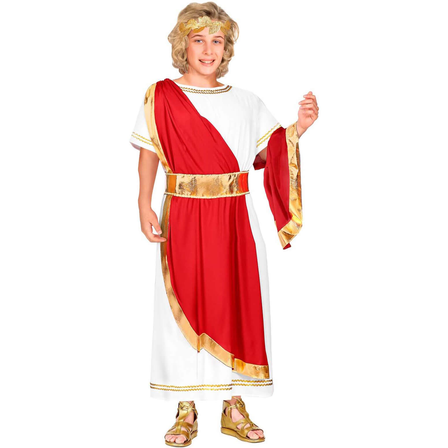 Römer Grieche Cäsar Kinderkostüm Robe Tunika lang Deluxe weiß-rot