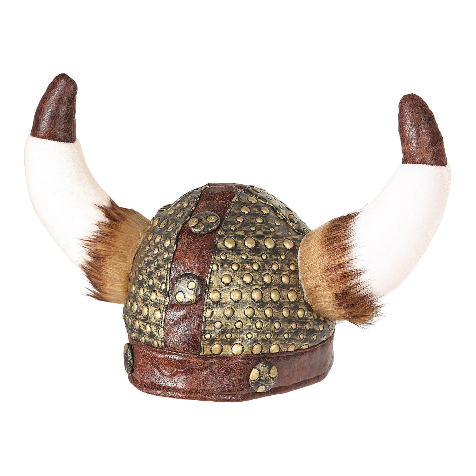Wikinger Helm mit Hörnern und Fell in Lederoptik braun-gold